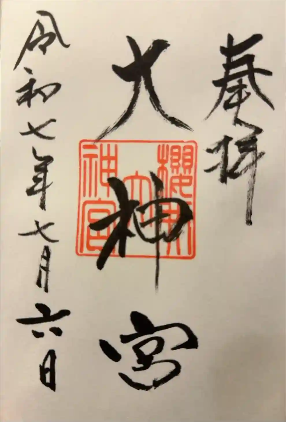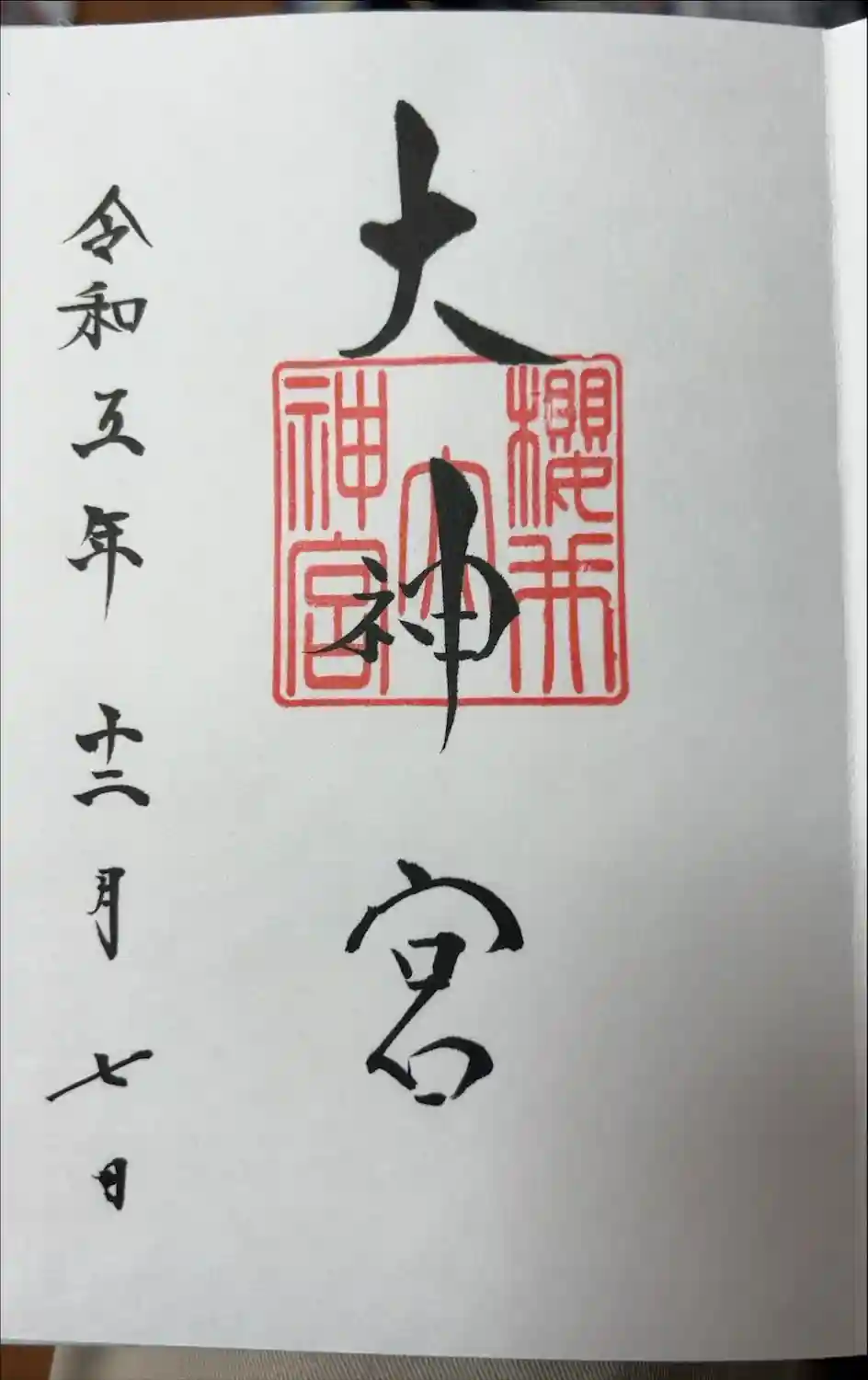 御朱印です。御朱印帳に書き入れしていただきました。櫻井神社で拝受できます。
