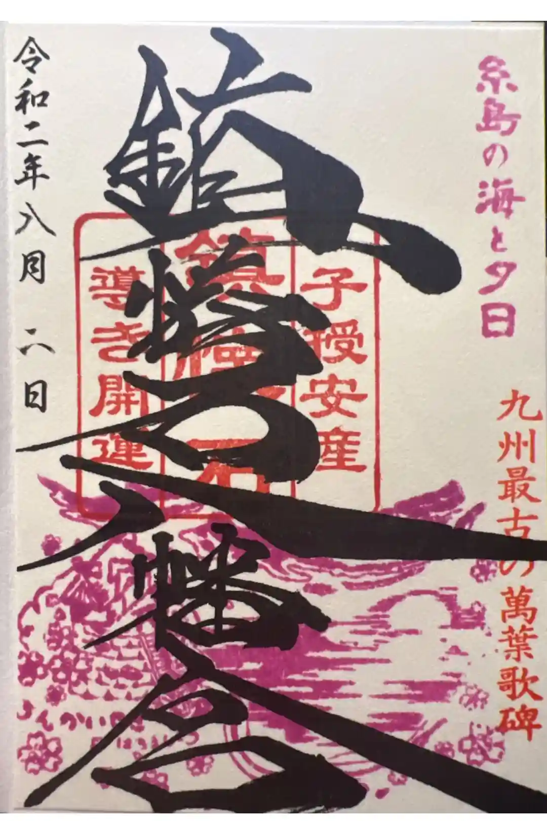 書置き御朱印②。箱島神社というちな鎮懐石八幡宮から少し離れた所の、海に突き出た小島にある神社です。