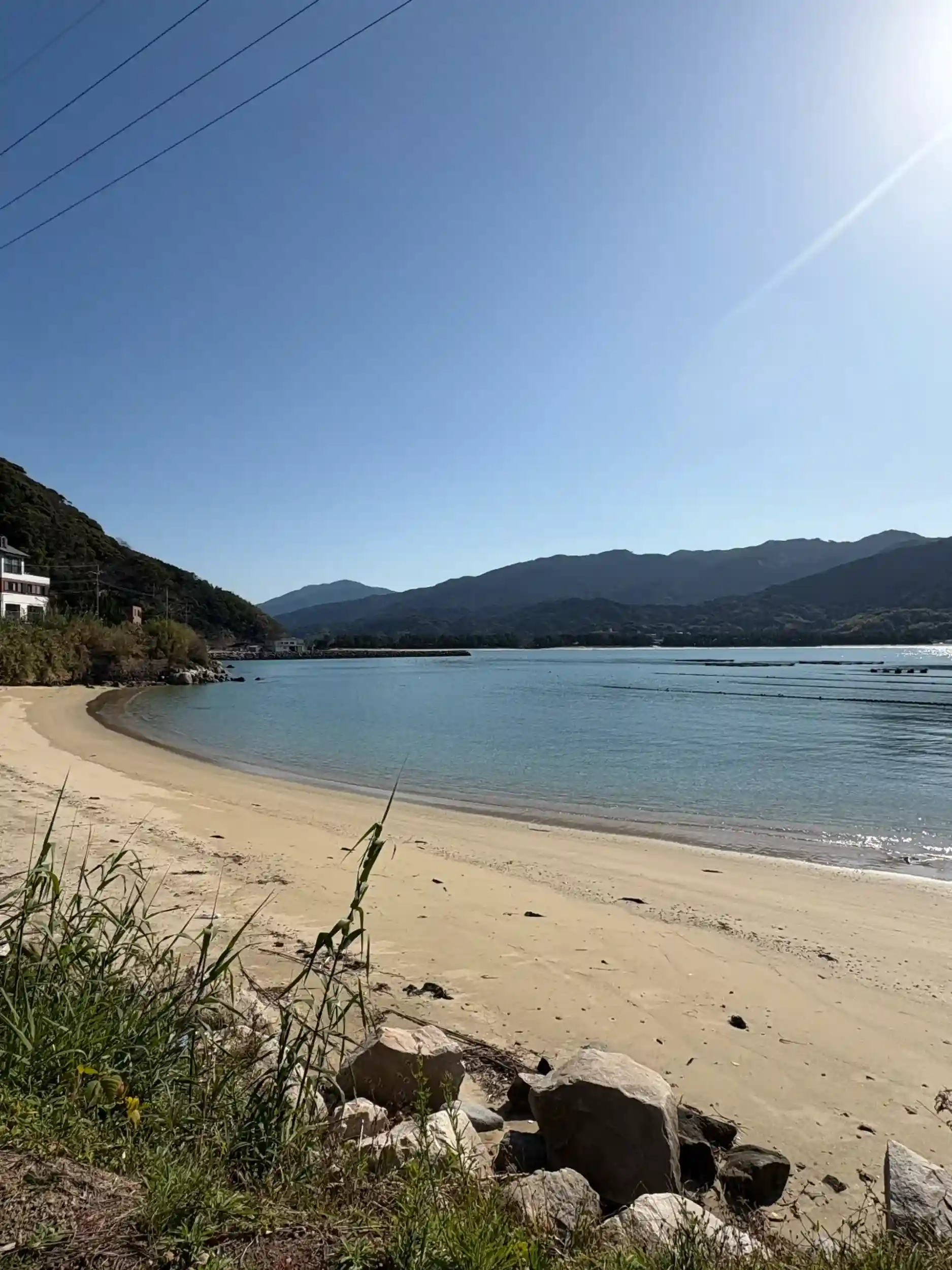 本殿前の階段に座り鳥居と海を眺めたかったけど立ち入り禁止のロープが張ってありました、残念😢