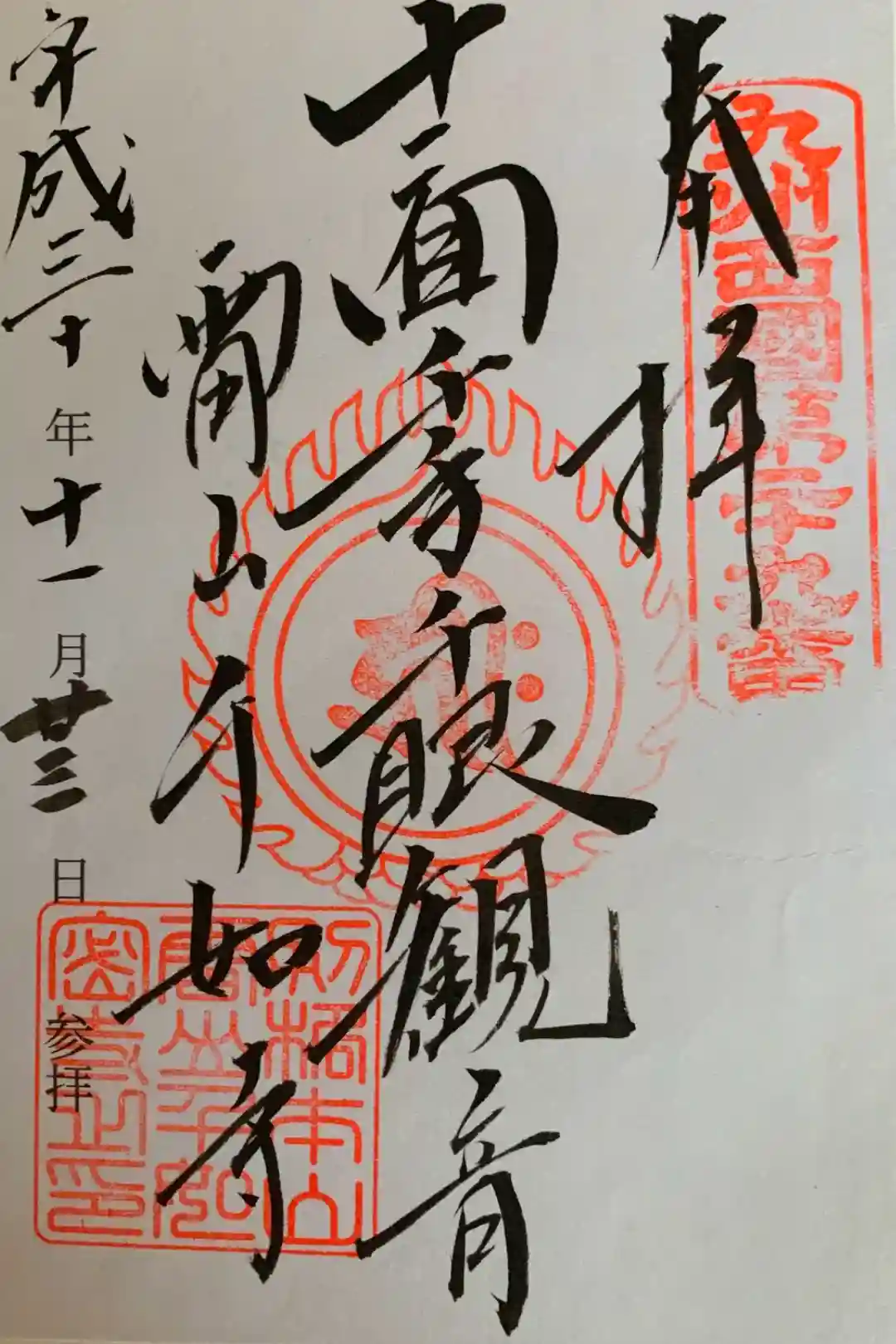 「十一面千手千眼観世音菩薩立像」を拝観後、直書きで授与いただきました