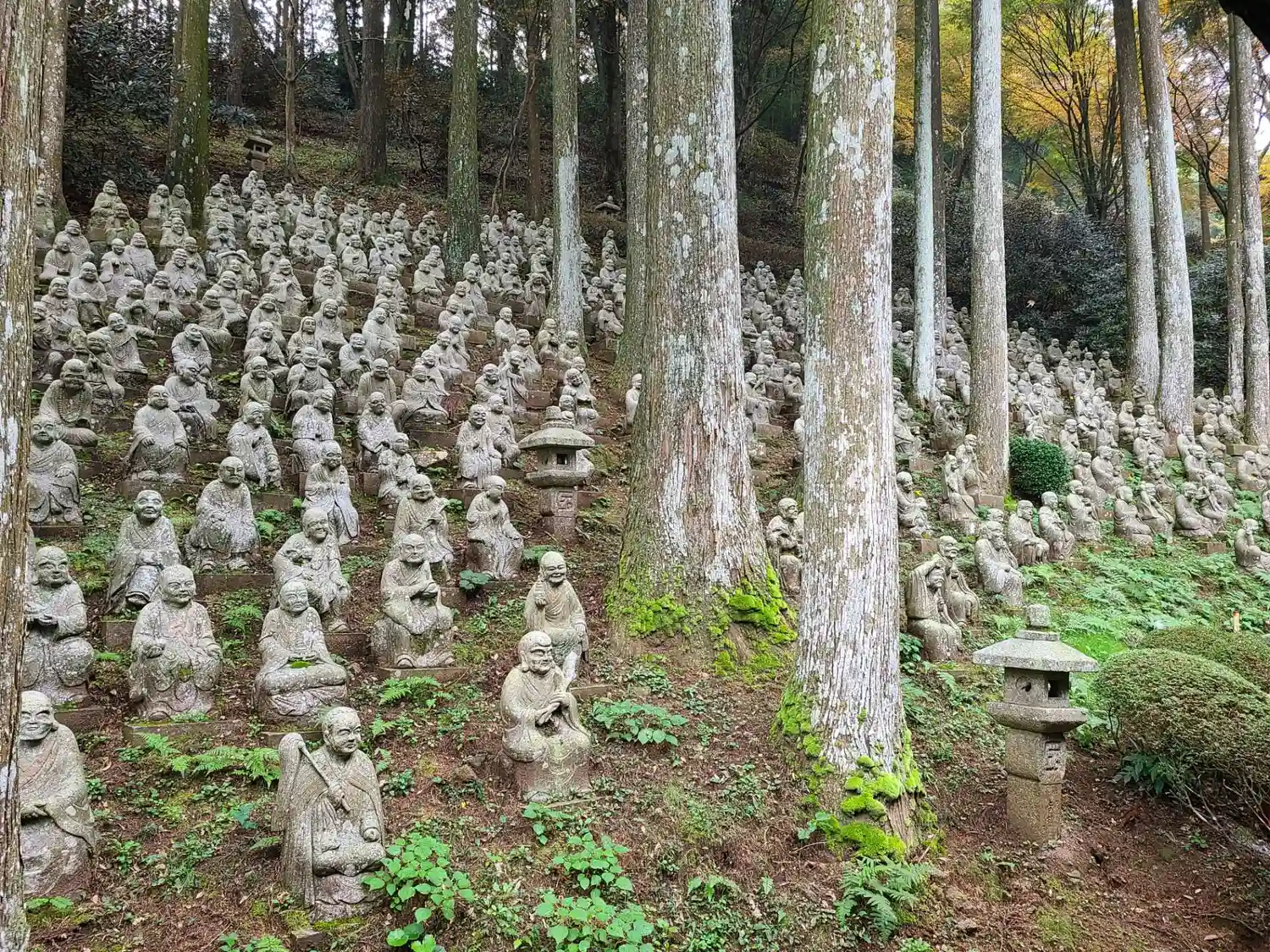開山堂への廻廊脇にある<五百羅漢像>。