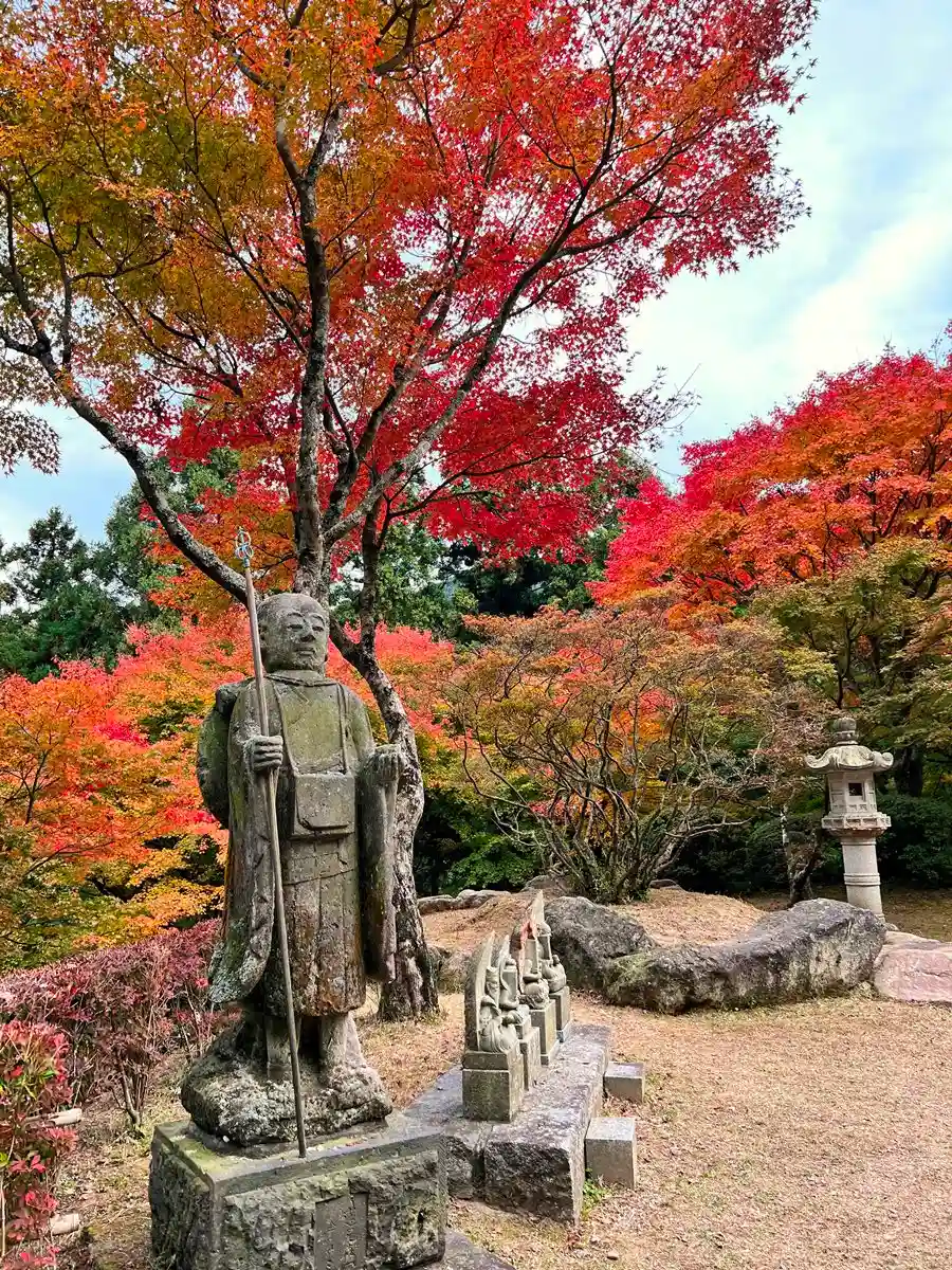 美しい紅葉と、入口に佇む<修行僧像>。