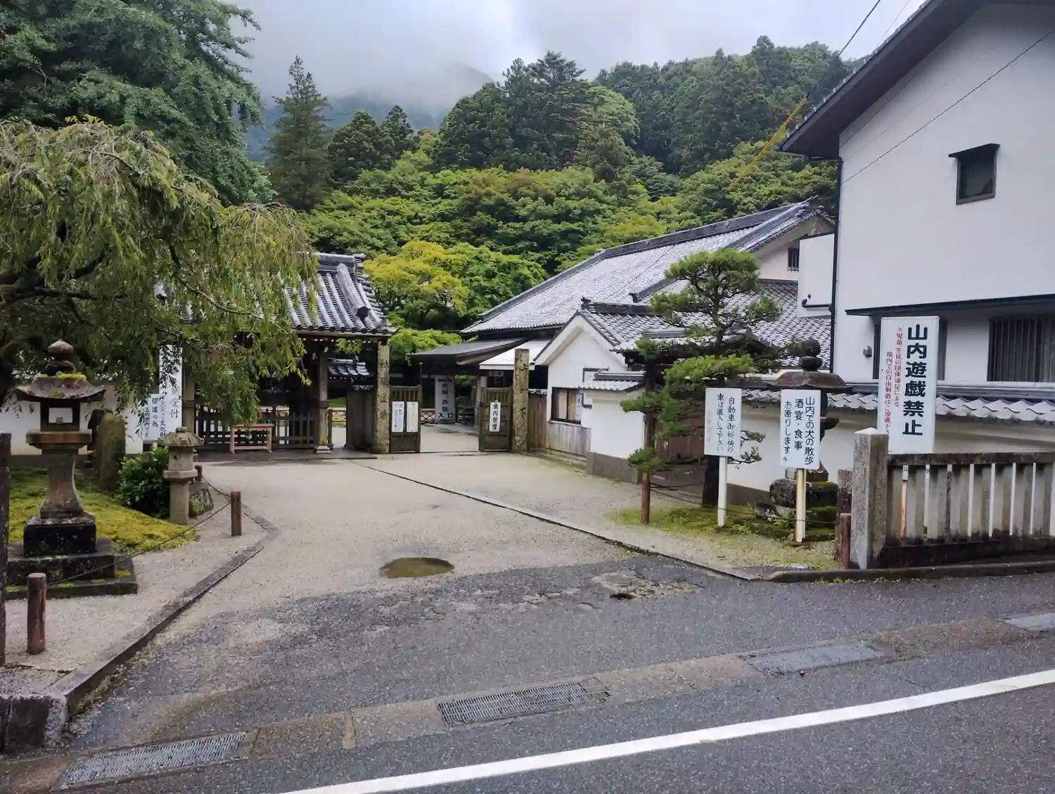 境内南東端入口全景。<山門>が見える。