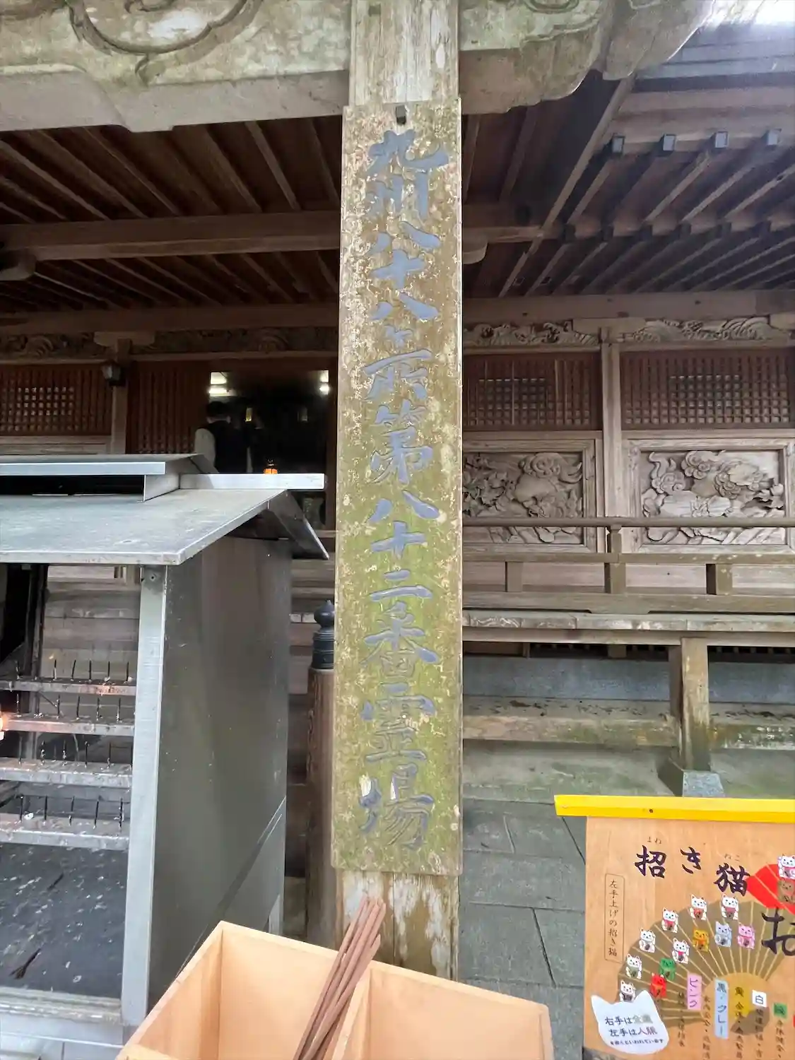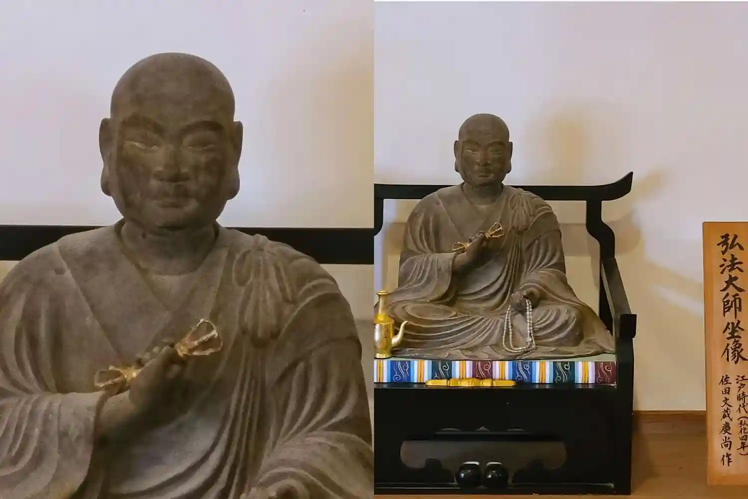 五百羅漢さまからさらに登ったこちらのお堂では、空海さんが中国で恵果さんから授かったという法具が展示されていました。(触ることもできました。)