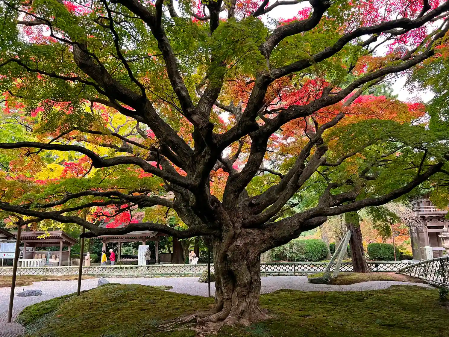 大楓の内側。紅葉が色づき始めなので、赤と緑のグラデーションが目を楽しませてくれる。