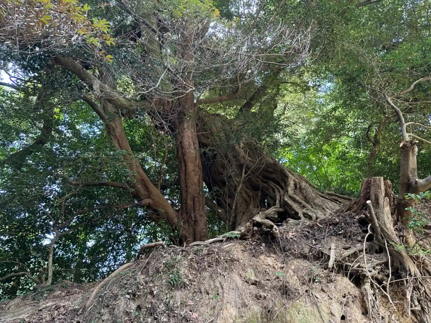 離れてみるとこんな感じ。根元の人間の背丈と比べると極太具合がよく分かる。