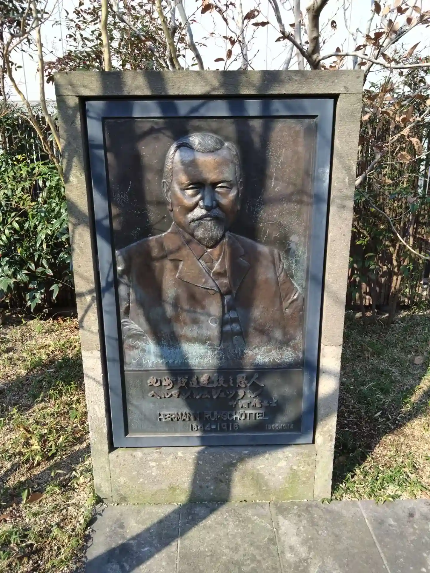 ドイツの鉄道技師で、日本に鉄道技術をもたらした、ヘルマン・ルムシュッテルのレリーフ。