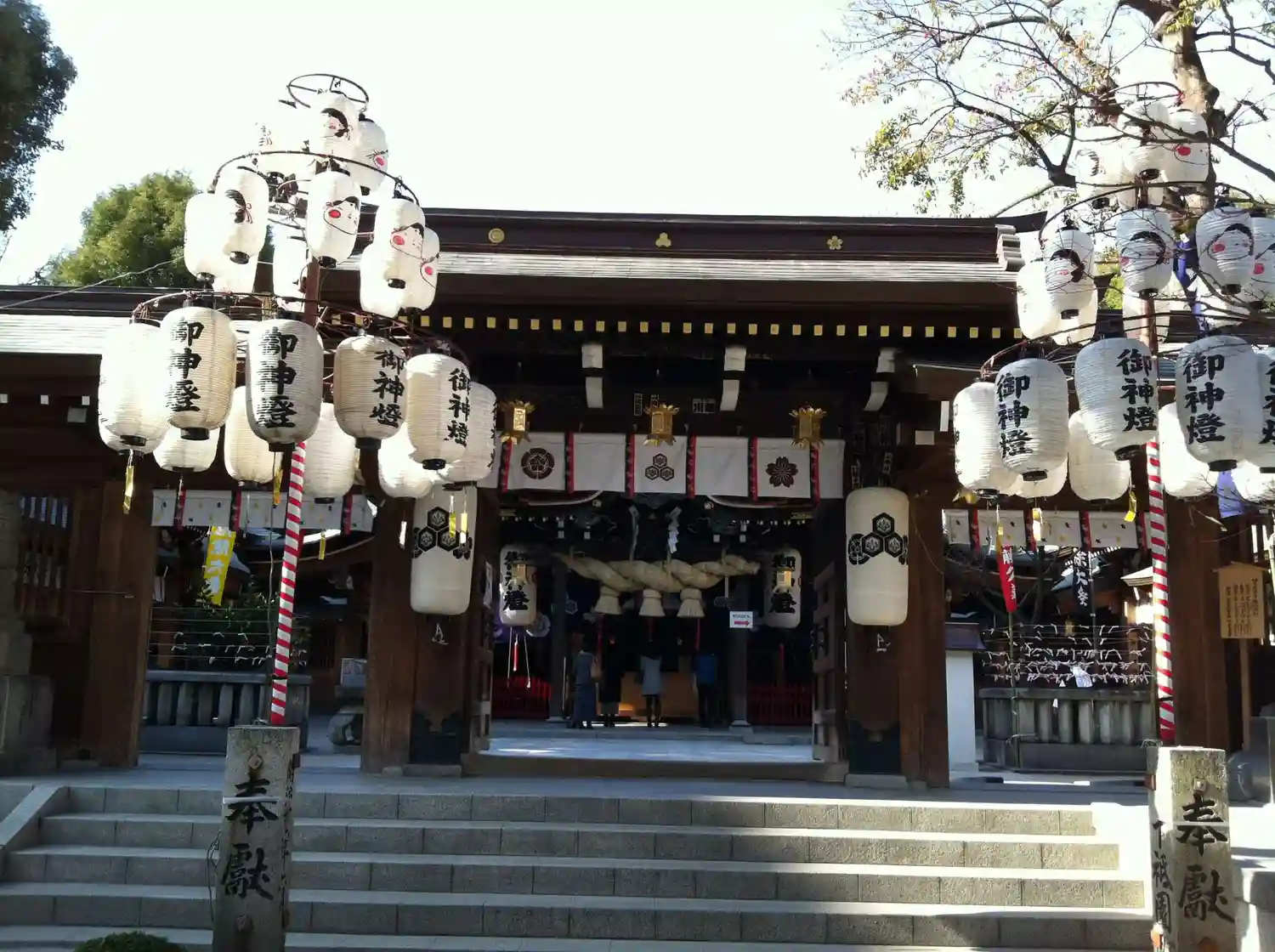 | ご由緒 | 博多の総氏神様としては最古の歴史を有し、天照皇大神(大神宮)、大幡主大神(櫛田宮)、須佐之男命(祇園宮)が祀られています。以前は3つの社にそれぞれ祀られていたそうです。大幡主大神は孝謙天皇天平宝字元年(757年)託宣によって鎮座され、素戔嗚大神は天慶4年(941年)藤原純友の乱の追討使小野好古が戦勝奉賽のために勧請されたといわれています。天照皇大神の奉祀についてはあまりにも古く史実としてはっきりしないそうです。 |