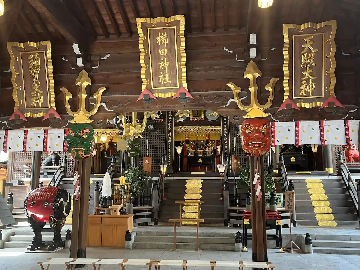 拝殿の中の側の様子で中央の様子です