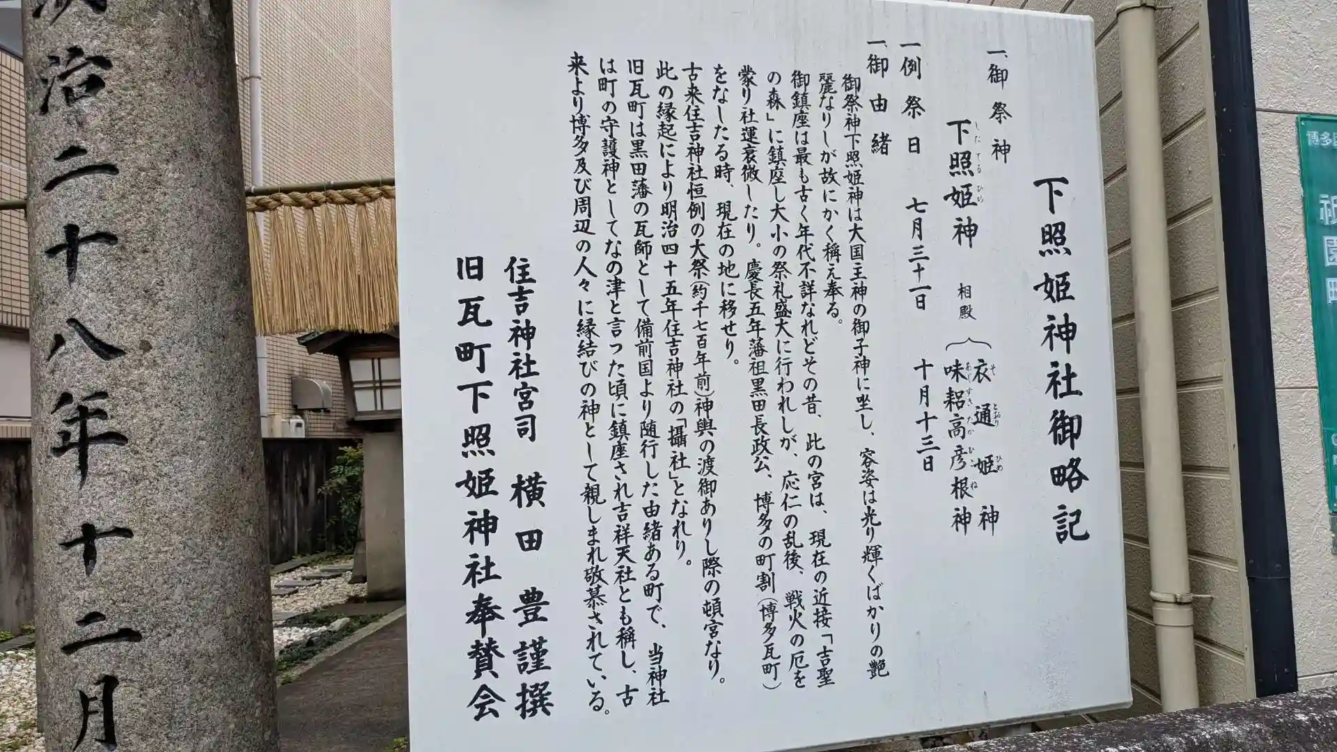 古くから博多にある神社で福岡藩初代藩主黒田長政による町割で新たに出来た瓦町の鎮守として今の場所に移されました。吉祥天社とも呼ばれ縁結びの神様としても知られています。