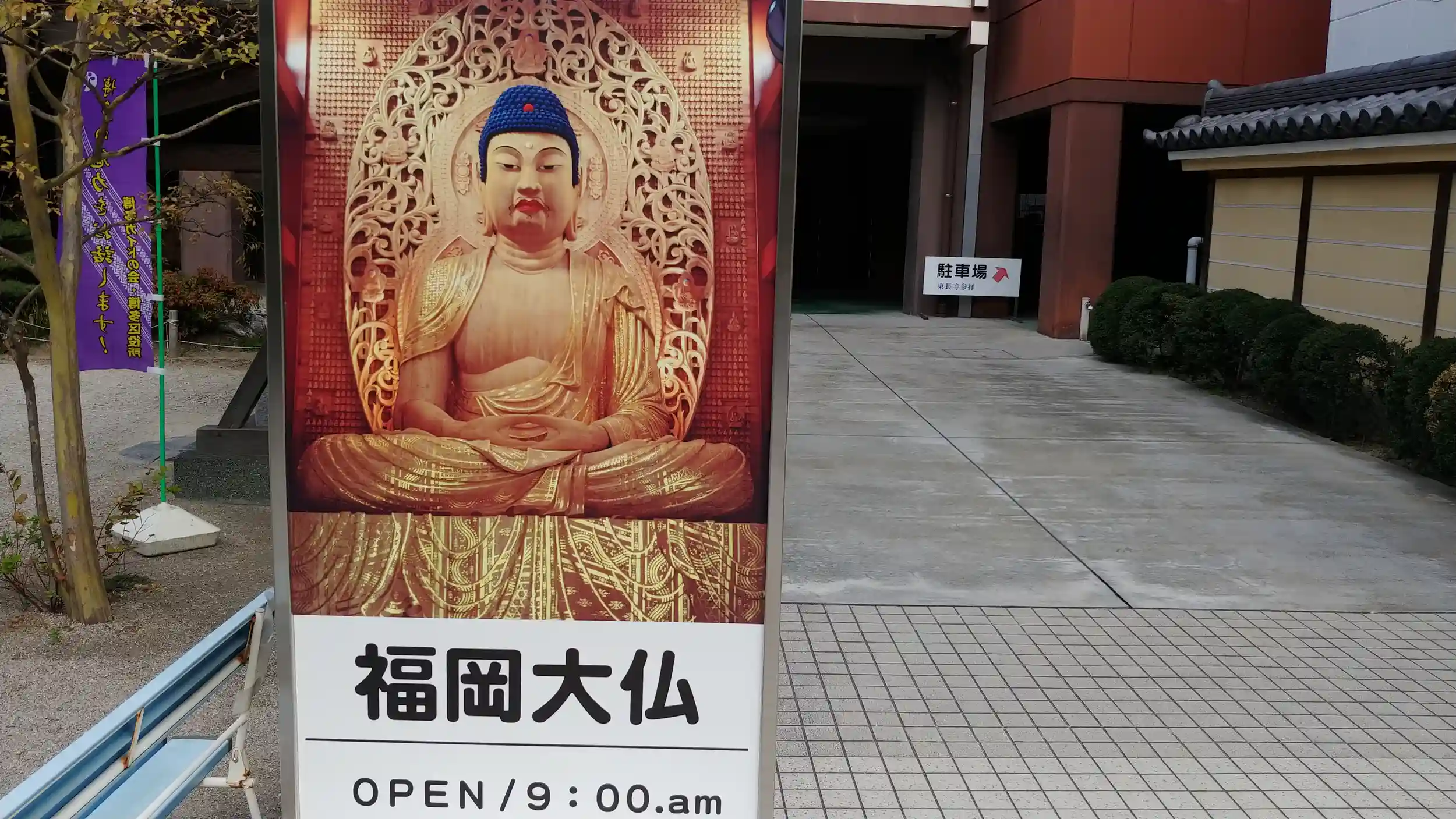 堂内には平成に造られた木座像「福岡大仏」があり、これが国内最大の木座像ということもあり、近年の観光の目玉となっている。