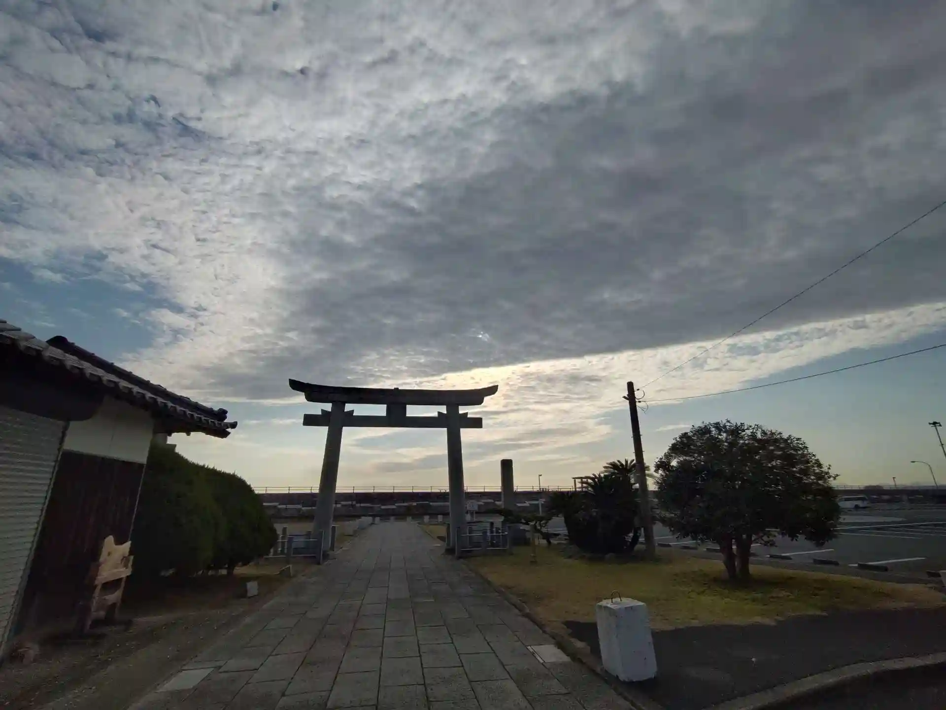 お参り後に一の鳥居、つまり海側に向かって歩いていると空がとても綺麗でした。