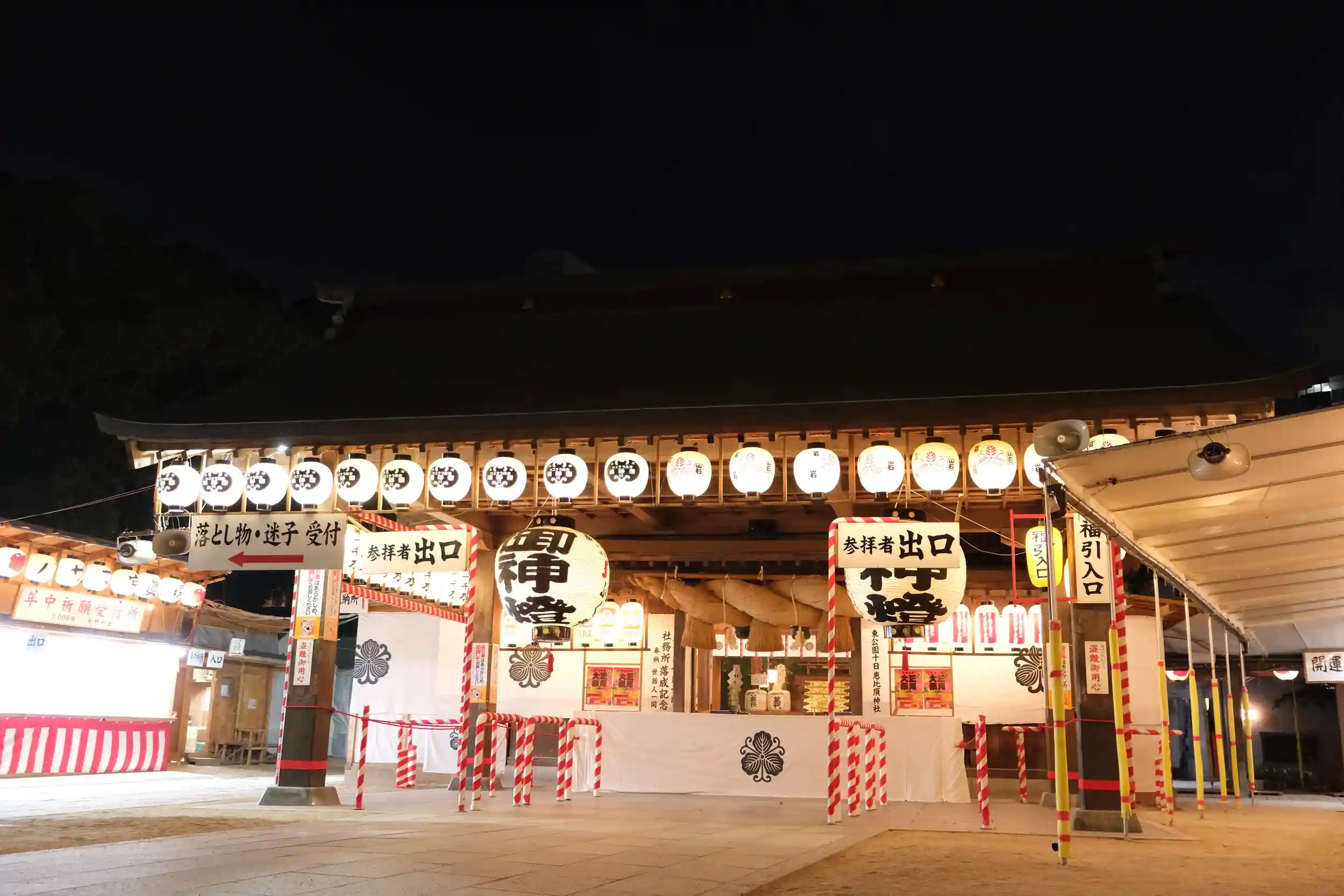 ・お守り、お札、えびす銭、おみくじ、縁起物、特別御朱印、各授与所 10時〜23時
