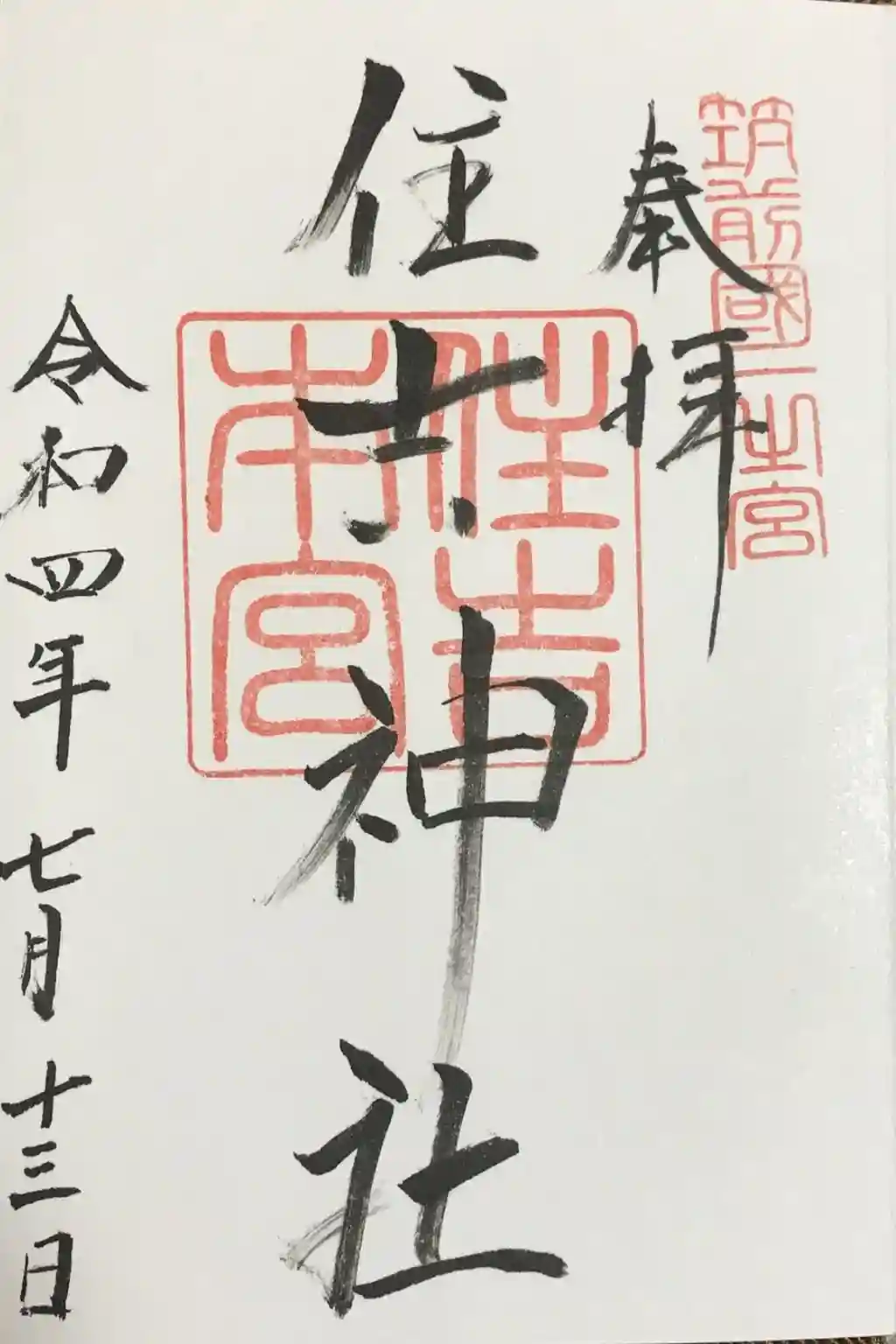 筑前國一之宮の住吉神社を参拝させて頂きました。こちらの住吉神社は日本最古の住吉三神を祀る神社と言われています。本殿は寺社建築最古の様式である住吉造です。住吉神社は底筒男神、中筒男神、表筒男神の住吉三神をご祭神としています。博多駅から徒歩20分程度で参拝しやすい場所にあります。境内は広くとても静かで洗練された雰囲気の神社です。古代力士像やのぞき稲荷など見所も多数あり、自然も豊かでゆっくりと散策することができました。