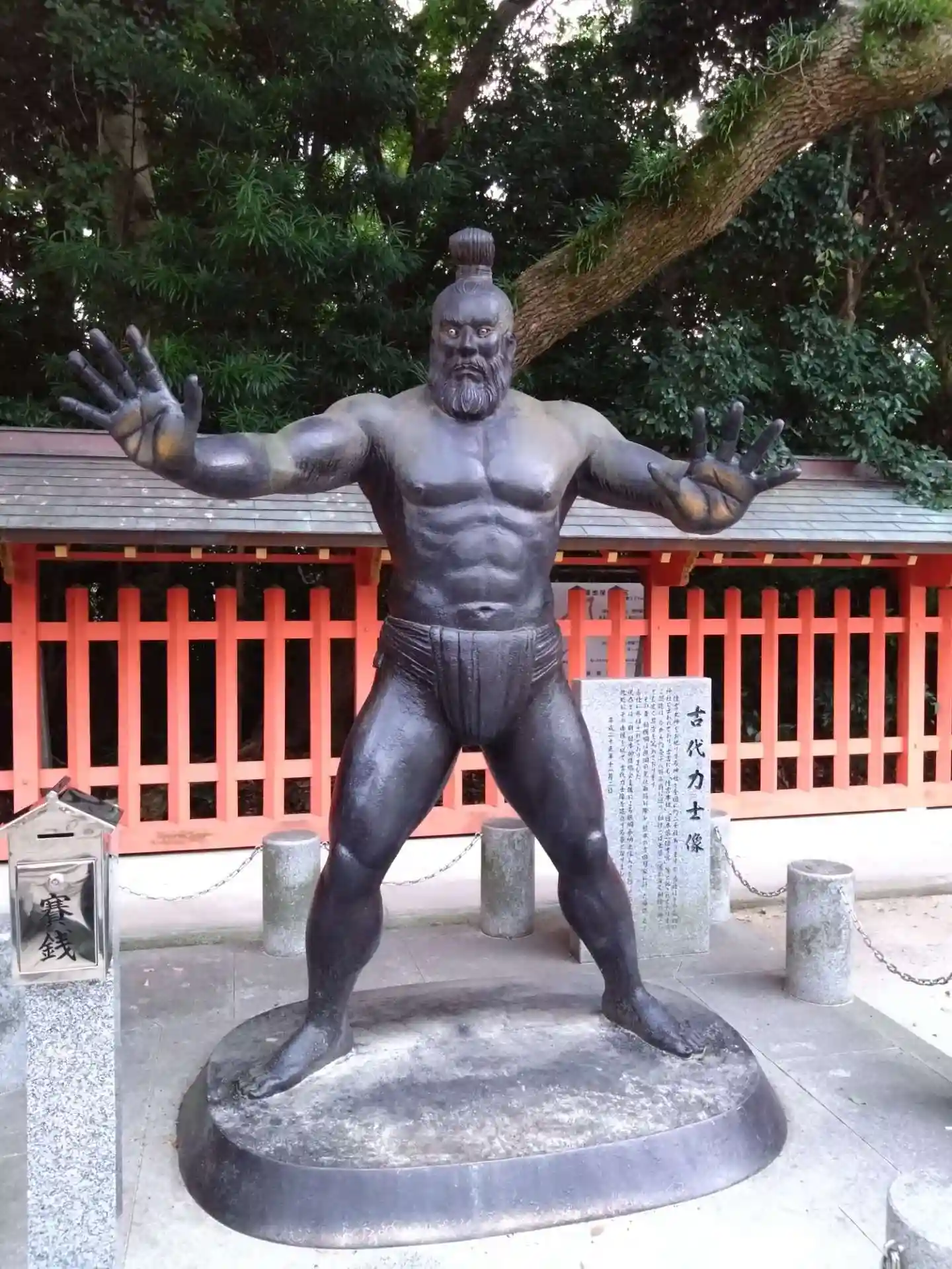 拝殿の右手にある<古代力士像>。