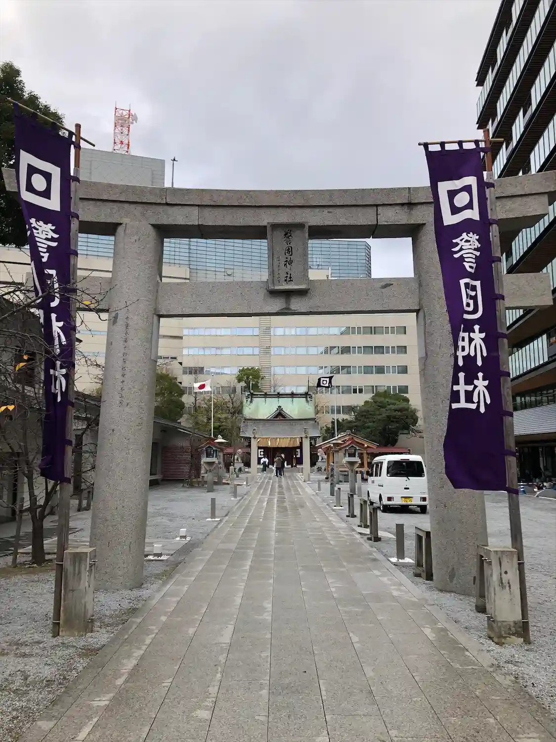 ビルとかデパートに囲まれている警固神社