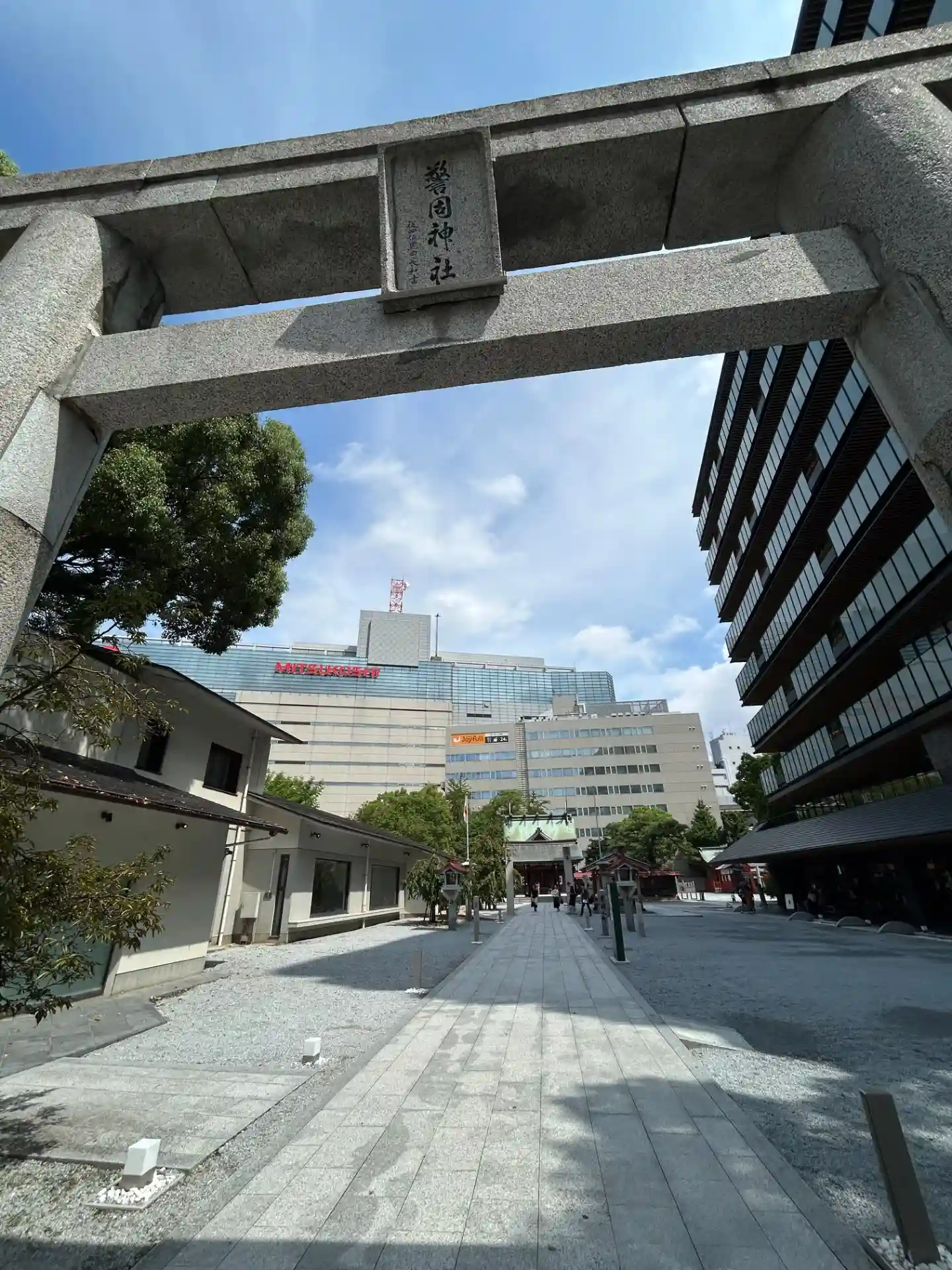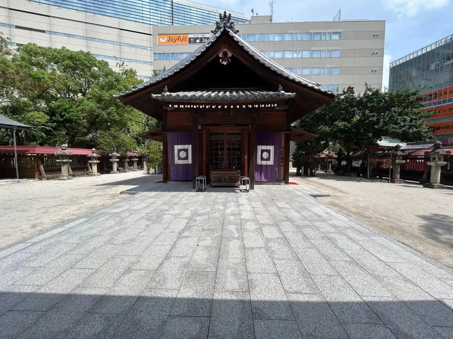 福岡の天神駅すぐ ビルとかデパートに囲まれている警固神社
