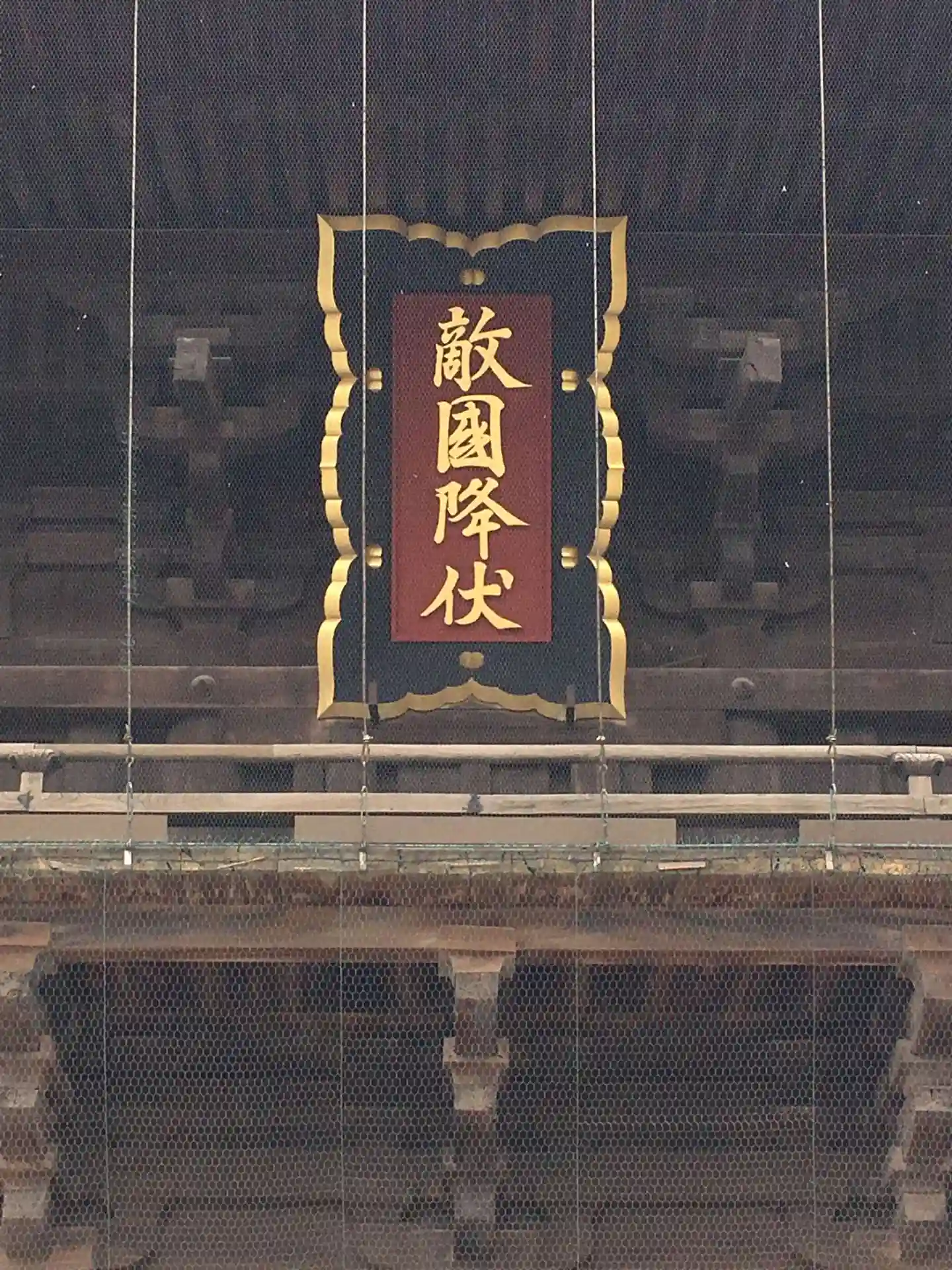 亀山上皇が元寇の際、相手の降伏を祈願し「敵国降伏」の扁額が掲げられた。