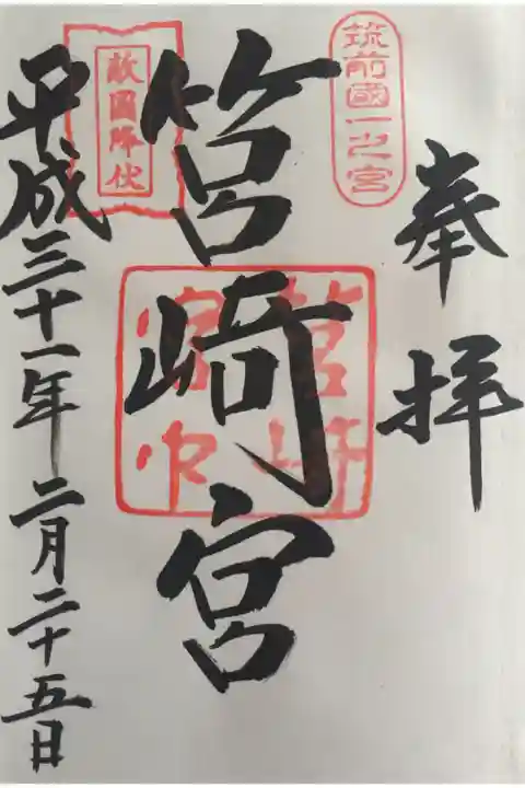延喜式内名神大社(筑前國那珂郡/八幡大菩薩筥崎宮)、筑前國一宮、旧官幣大社、現別表神社です。