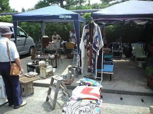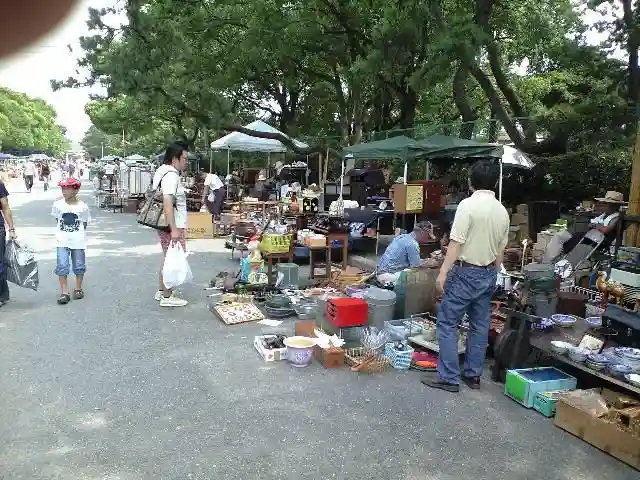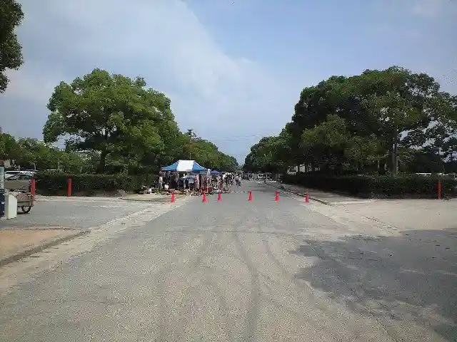 参道が長いっ。海まで続いています。この日は参道でフリーマーケットが行われてました。放生会(ほうじょうや)は毎年楽しみにしてました。