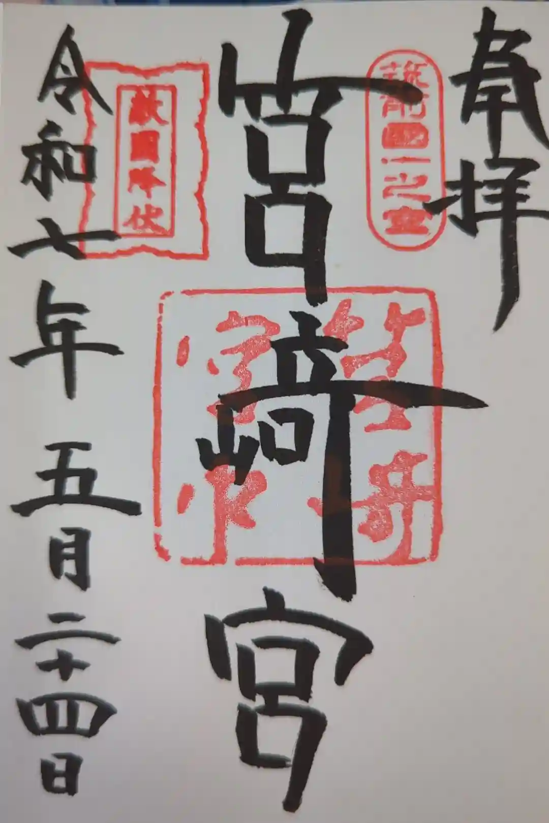 奉拝に重ねて「筑前國一之宮」、筥崎宮の下に「筥崎宮印」、左上に「敵國降伏」の印が押されています。