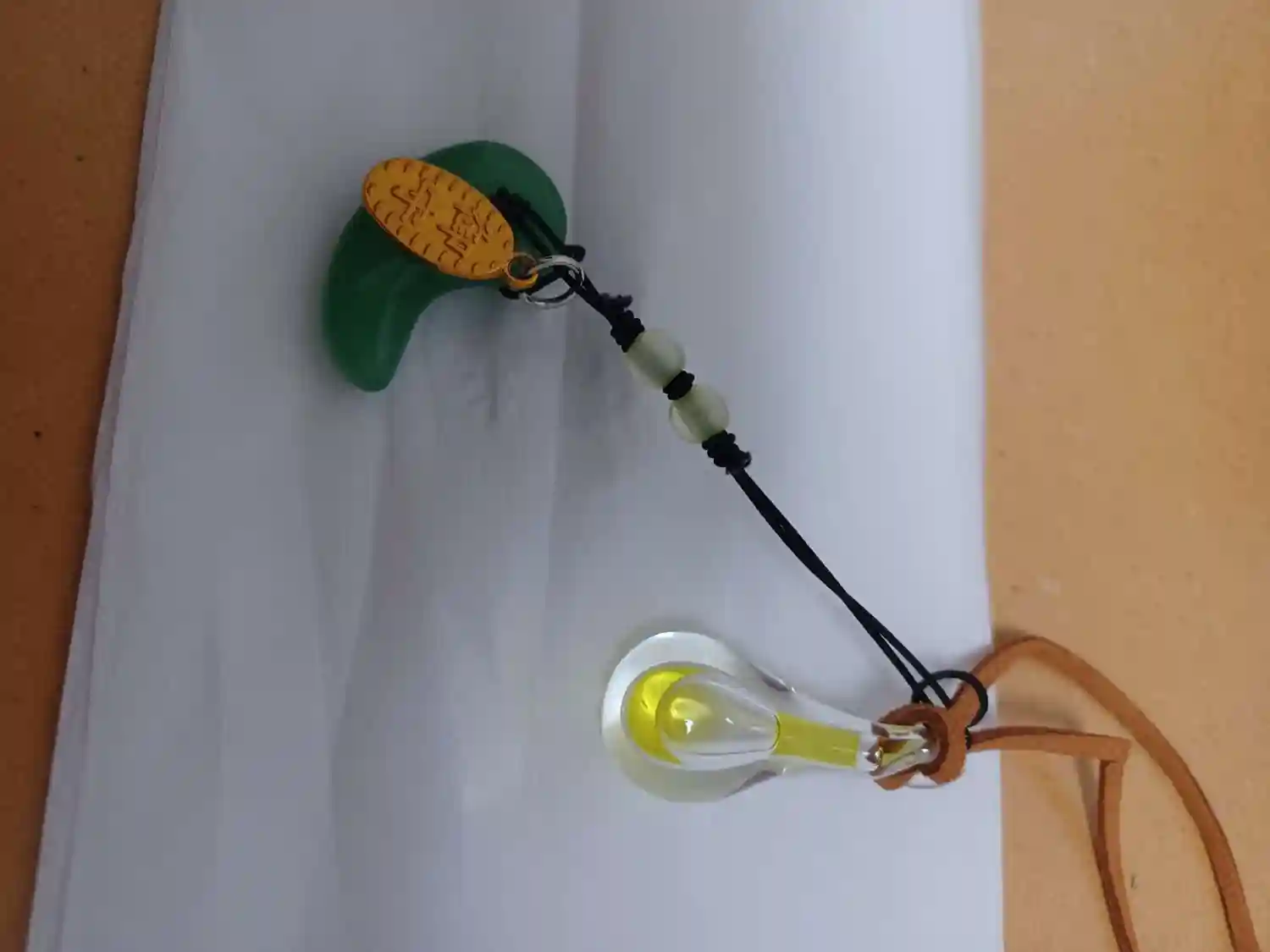 手前、黄色い方が千切れた御守り様の代わりに新しく授けて頂けた御守り様になります。