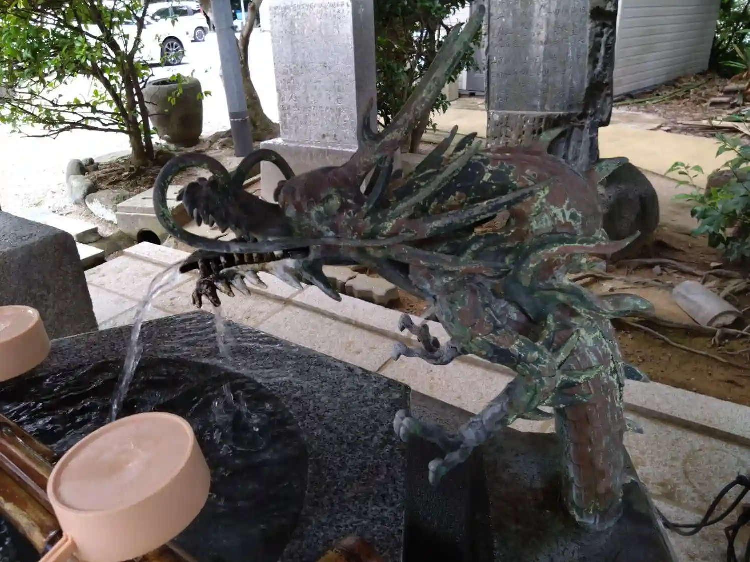 神門をくぐって、すぐ右側にある<手水舎>。