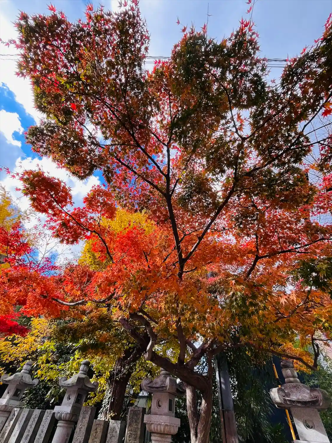 青紅葉と石灯籠