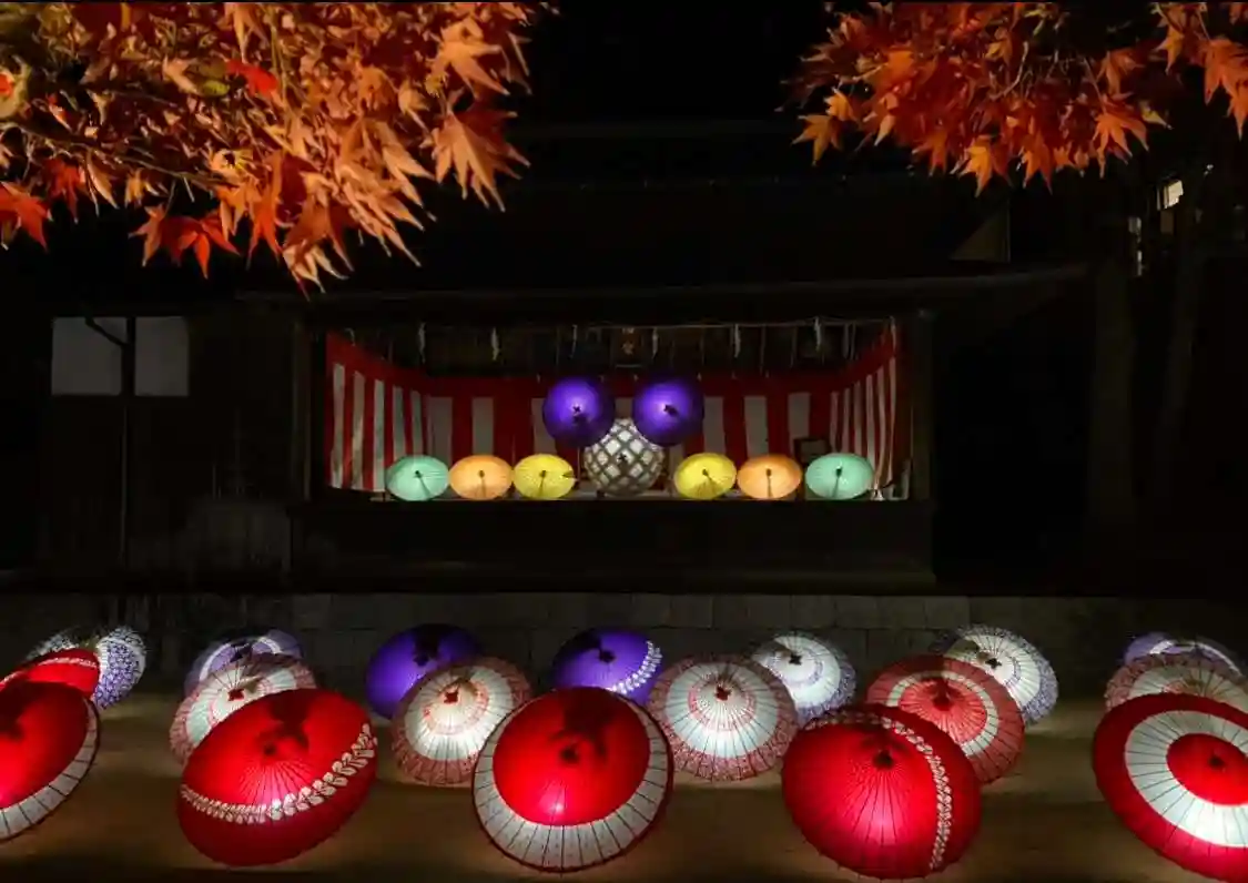 もみじ祭りの和傘灯り