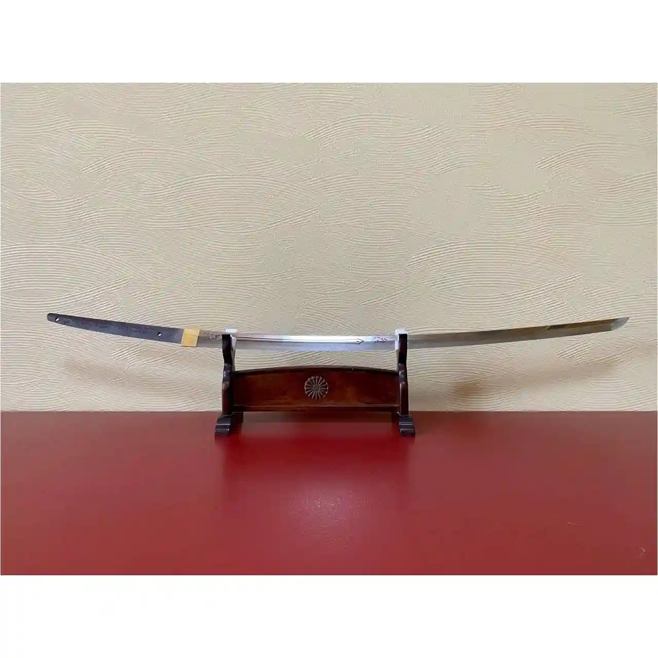 刀剣押形、黒田藩の家紋である藤巴がデザインされています。