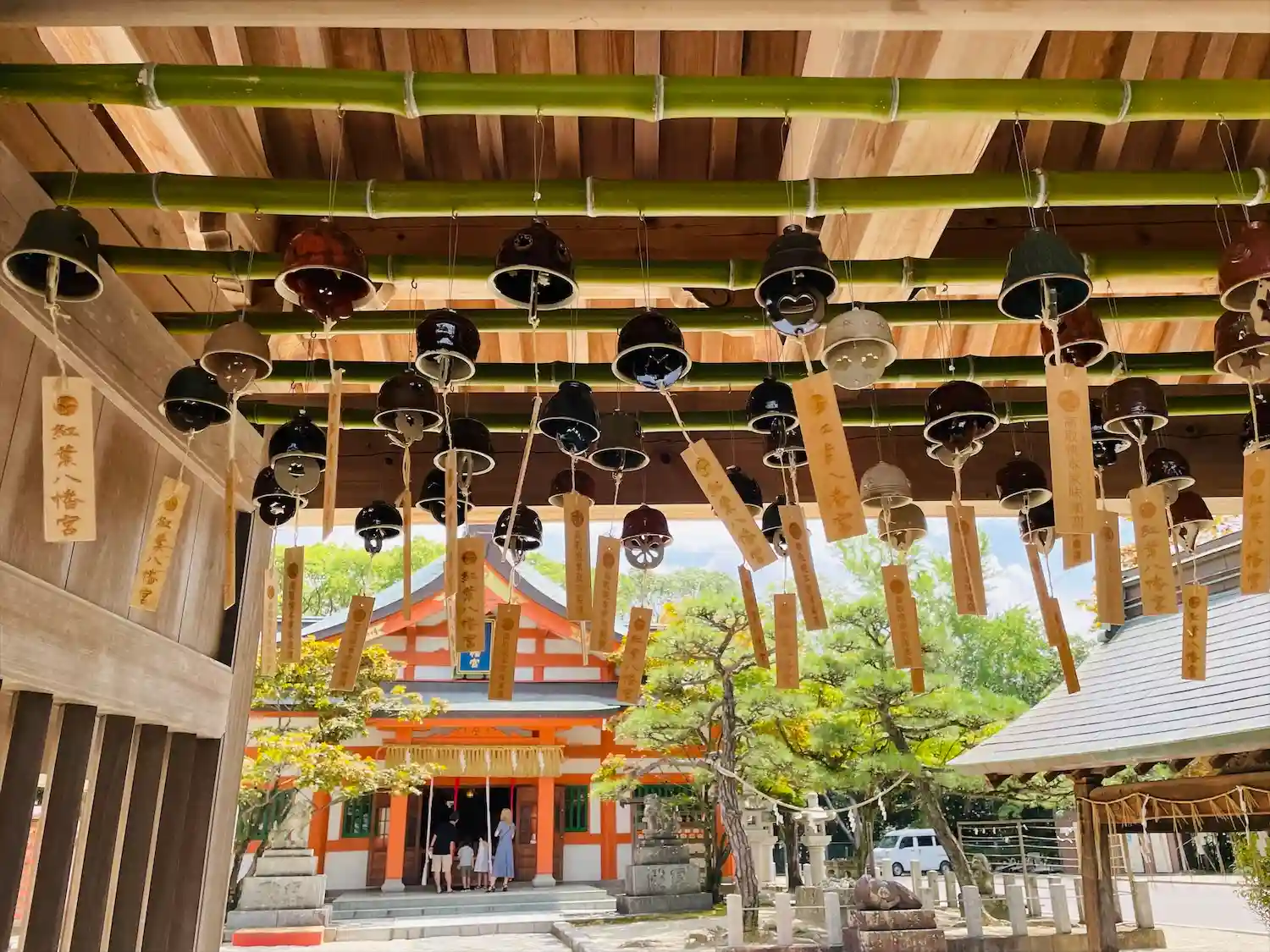 神門に飾られた高取焼の風鈴が軽やか…