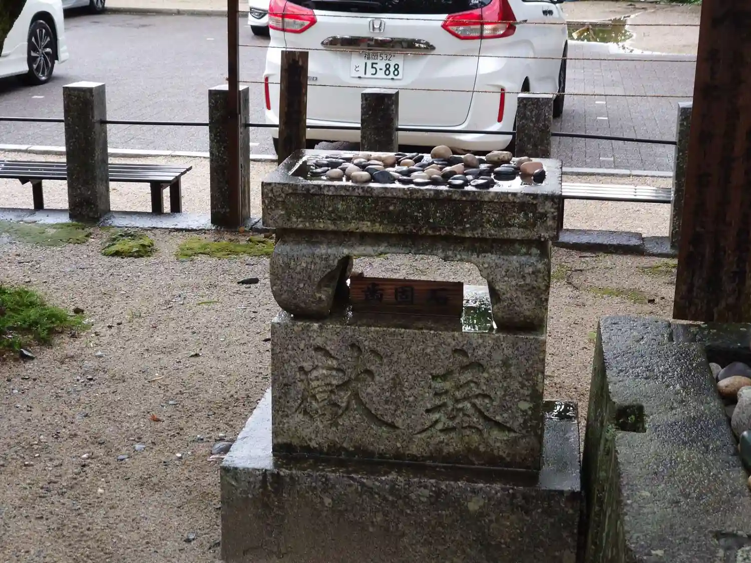 雨上がりの参拝となり、石段参道や利生の水の苔は元気な様子で…