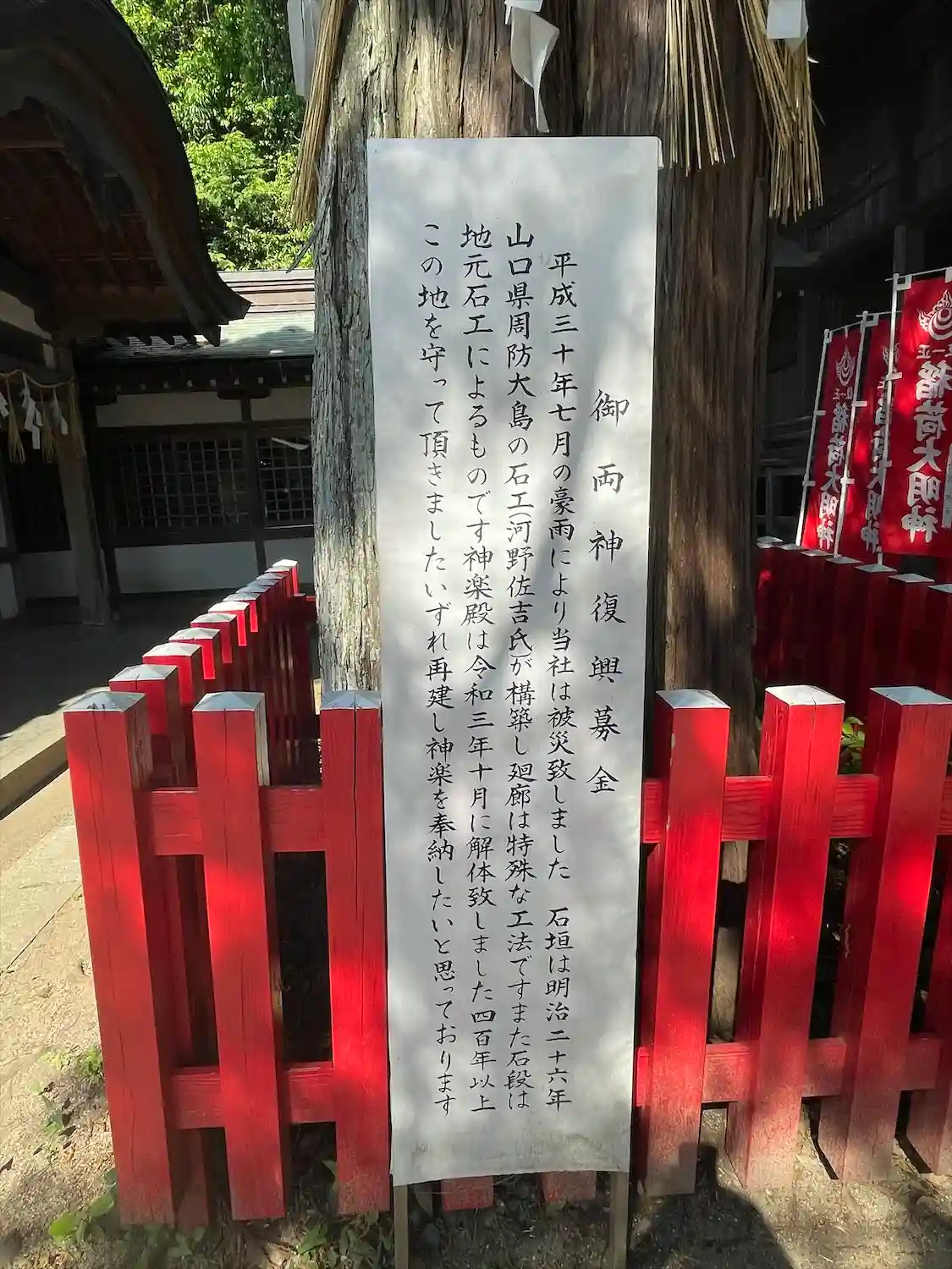 平成30年の西日本豪雨に被災し、鳥居など壊れ、