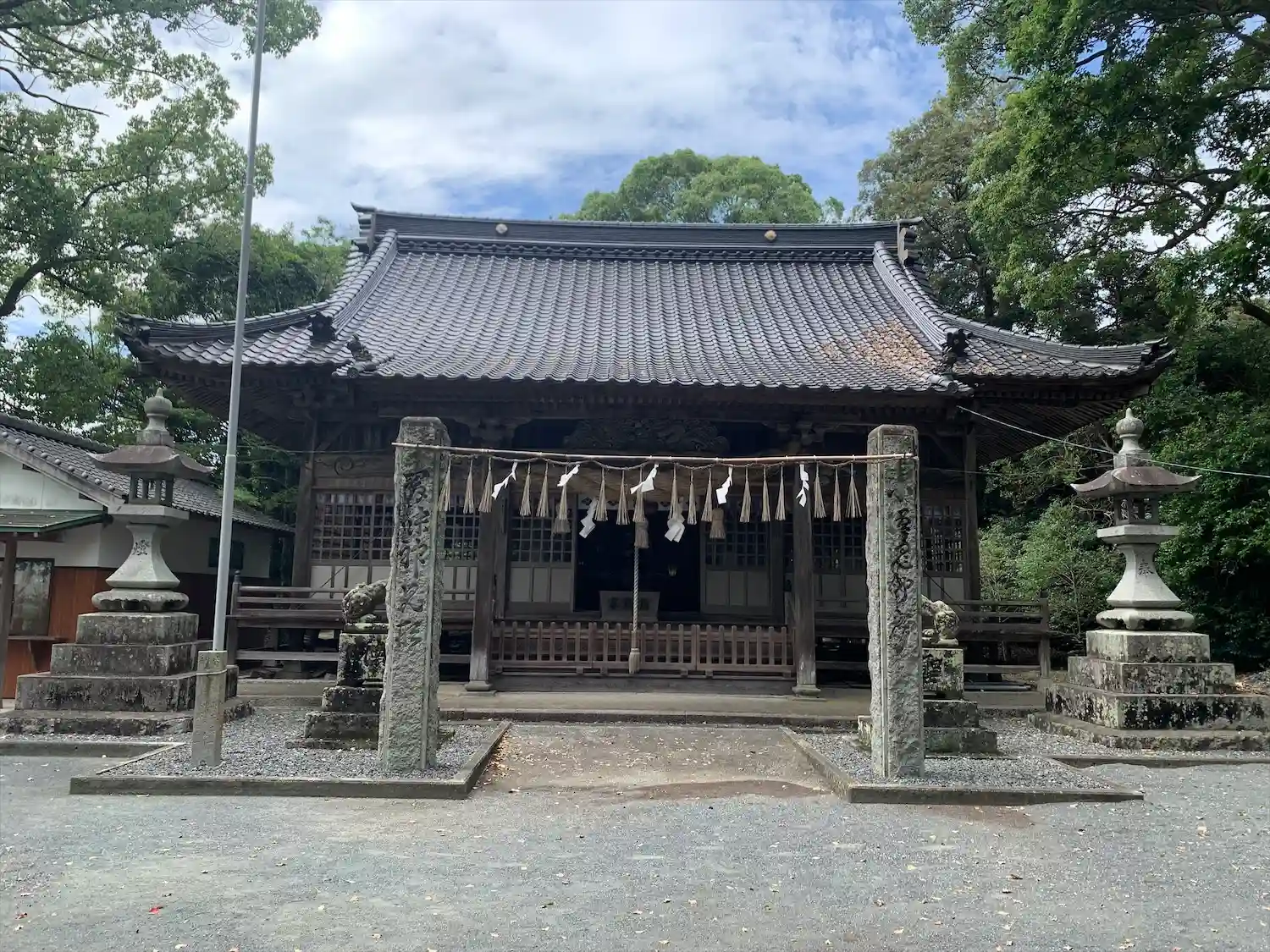 ご祭神《主》素盞嗚命,《配》湍津姫命,天津彦根命,熊野日命,活津彦根命,大市姫命,田心姫命,稲田姫命,天忍穂耳命,天穂日命,市杵島姫命,手摩乳命