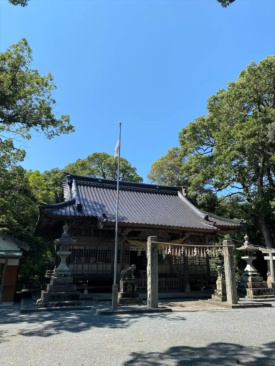 すぐ近くが海で海からの参道もありましたが拝殿左上にスズメバチの巣があり怖くて散策諦め短時間で参拝を終了。
