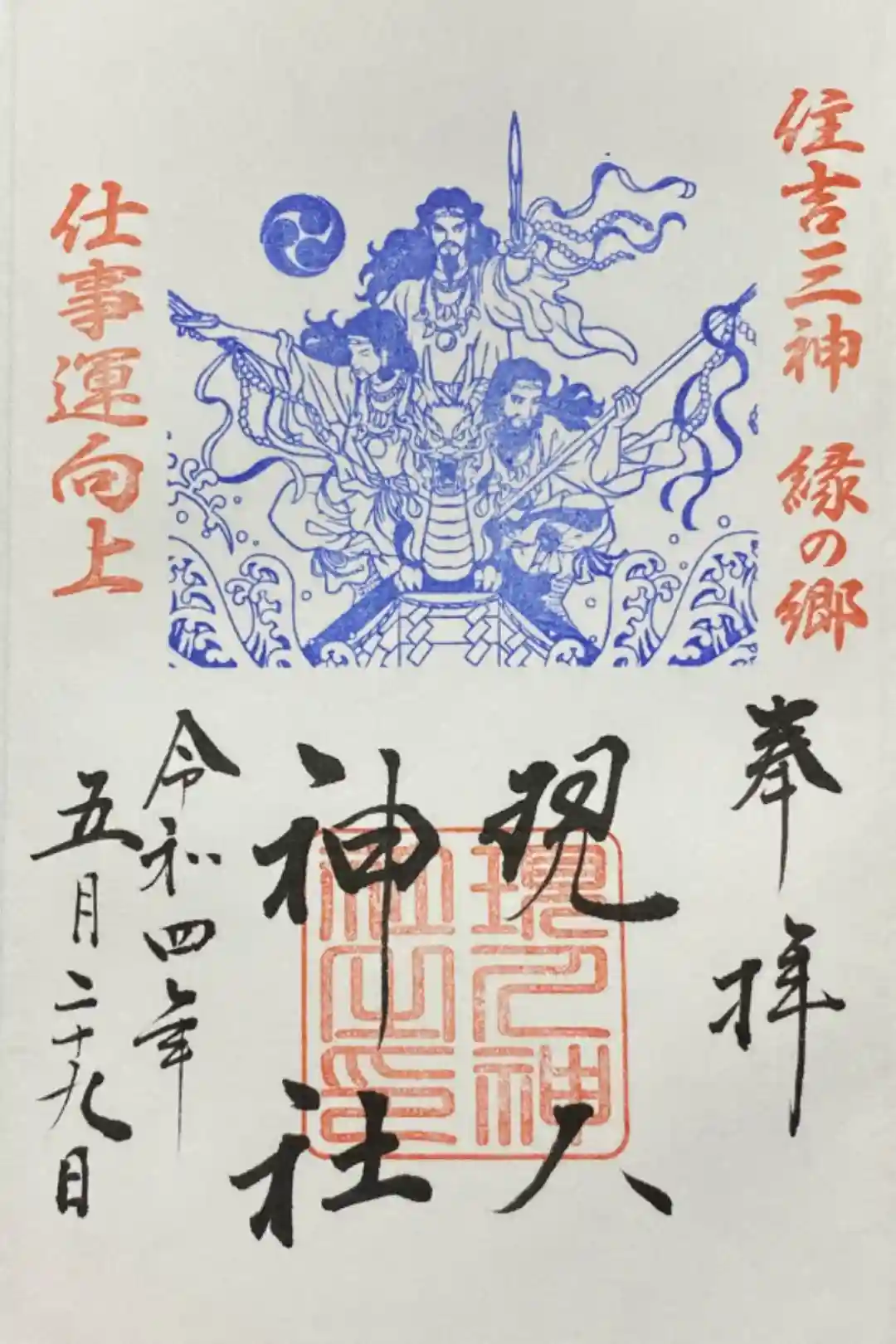 通常の住吉三神の御朱印もかっこよくて悩みましたが、今回は五月の月替わり御朱印をいただきました。