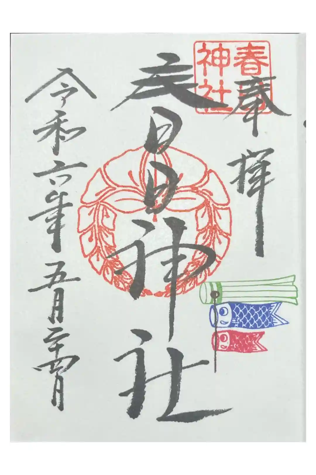 五月の御朱印。鯉のぼりのスタンプがかわいい💕