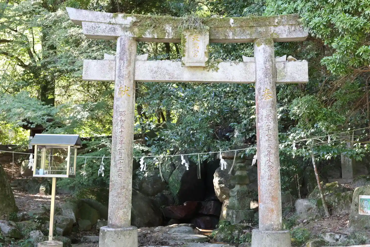 向かって左が紫藤の滝への鳥居、右手が御自作天満宮✨どちらも菅原道真公ゆかりのところです😊