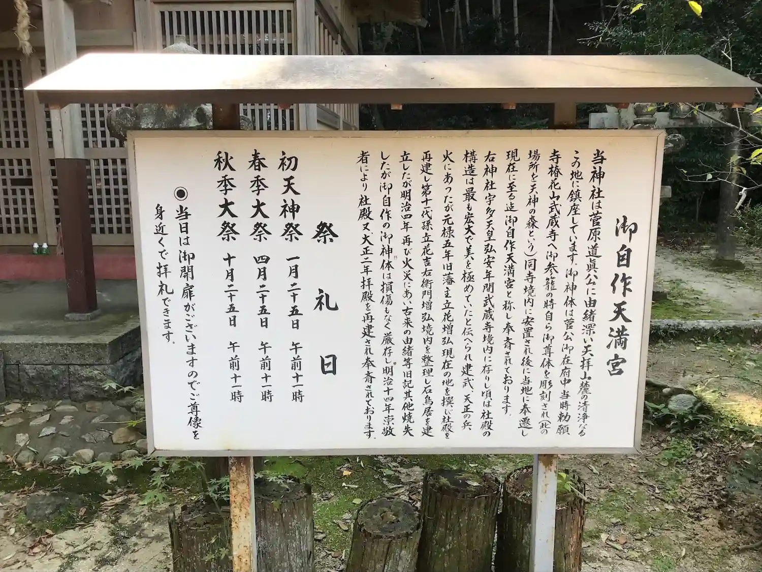 御自作天満宮は菅原道真公が自ら刻んだという等身…