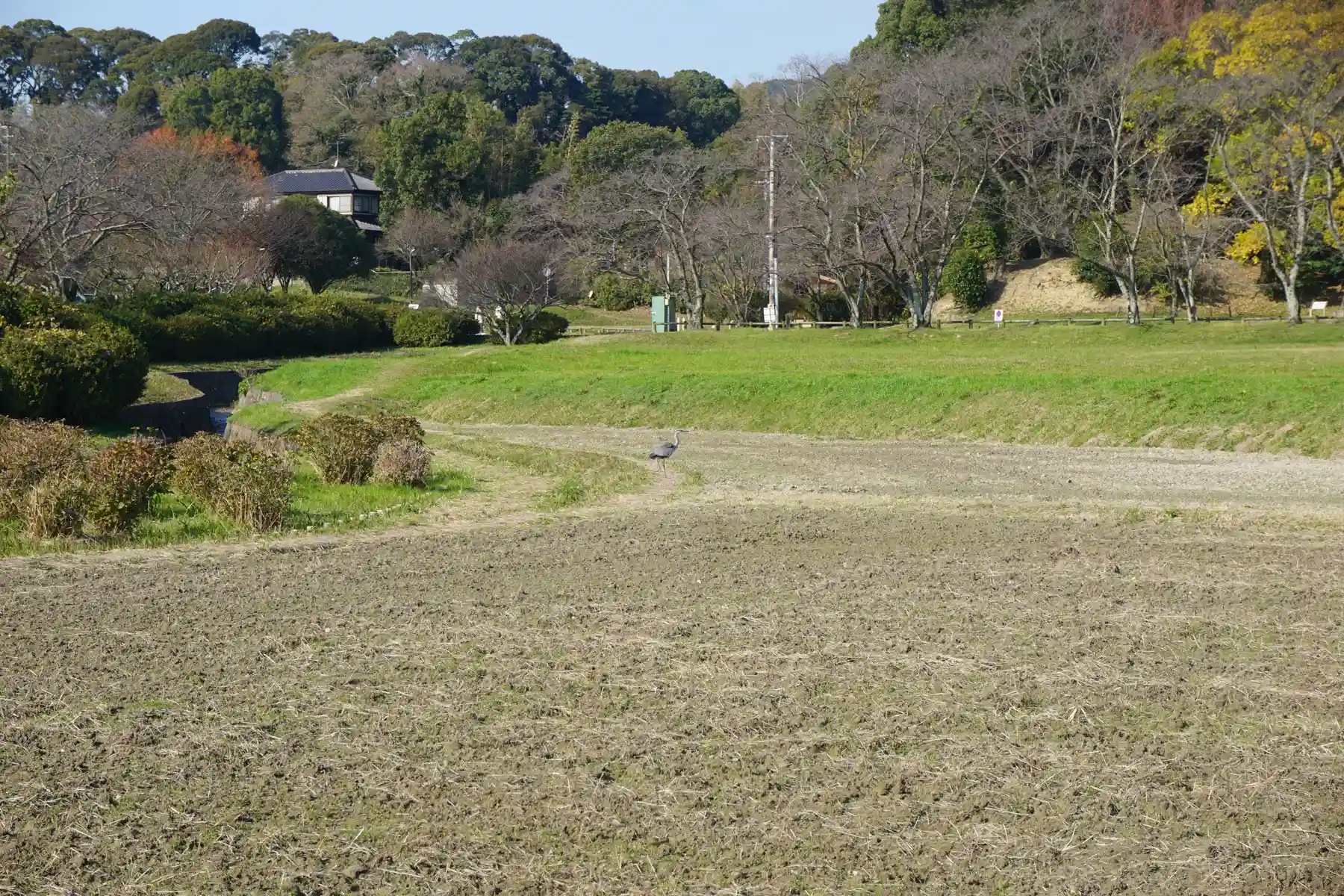 田んぼの中にサギらしき鳥が
