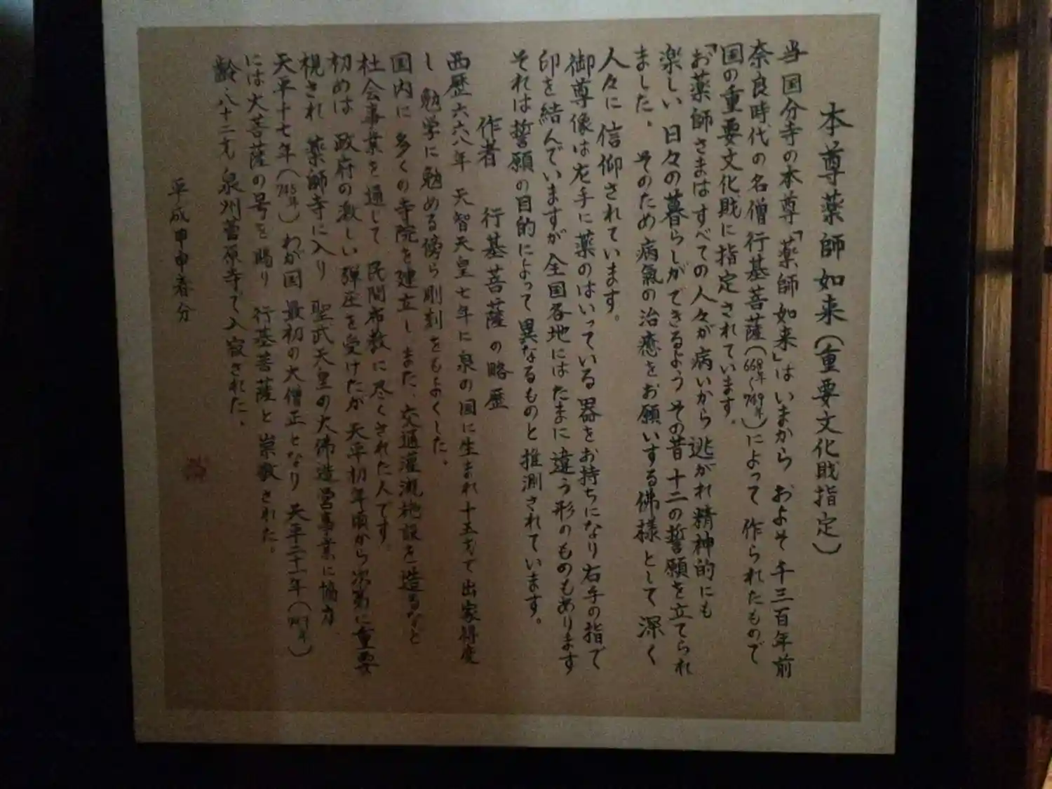 薬師如来坐像は行基菩薩作です…