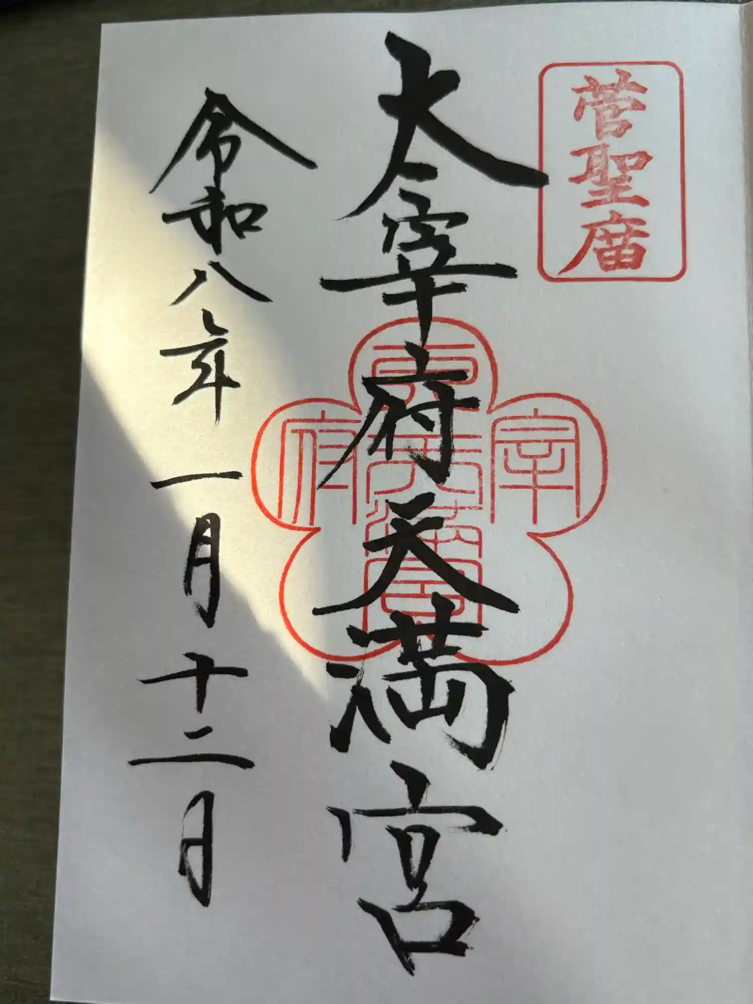 | 御朱印 | あり 太宰府天満宮の墨書きに下に梅の形の神社印が押されています。
