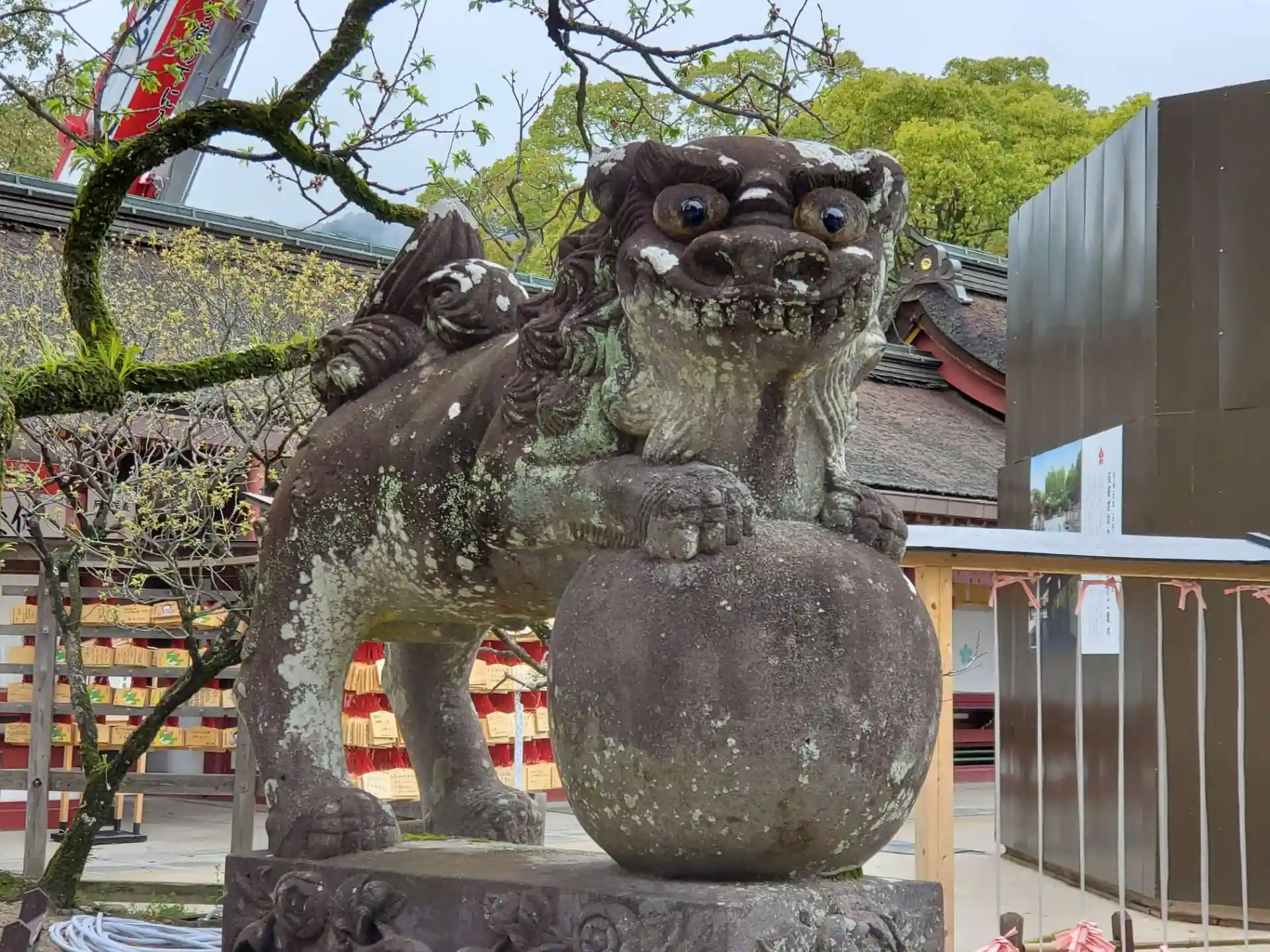 本殿前に建設中の仮殿が覆いで覆われていたため、本殿を見ることはできないかな?と思っていたのですが、横に回り込むと本殿に近付くことができ、改めてそこで参拝させていただきました。