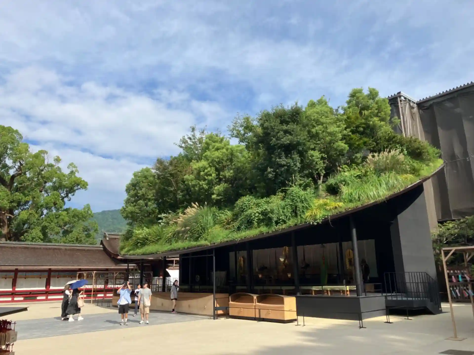 本殿工事中で歴史と現代が融合。参道含めおしゃれな空間。