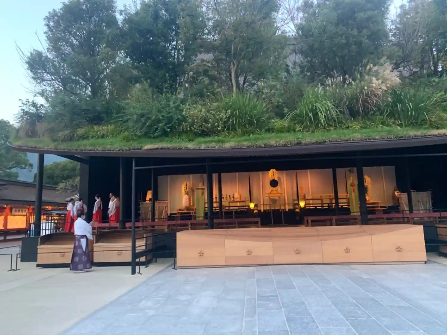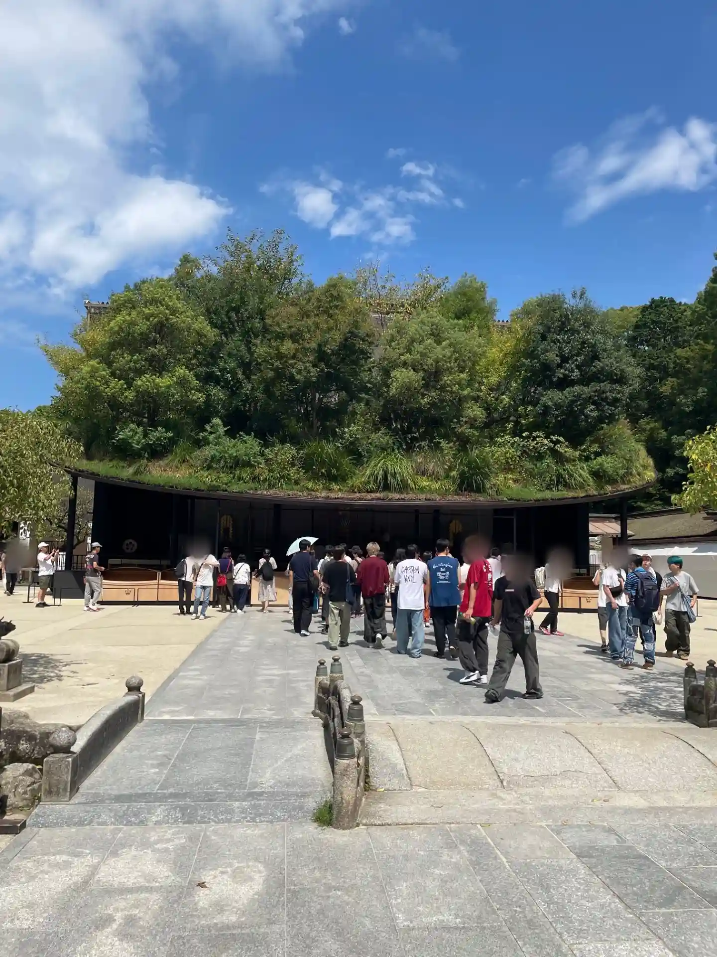 本殿工事中で歴史と現代が融合。参道含めおしゃれな空間。