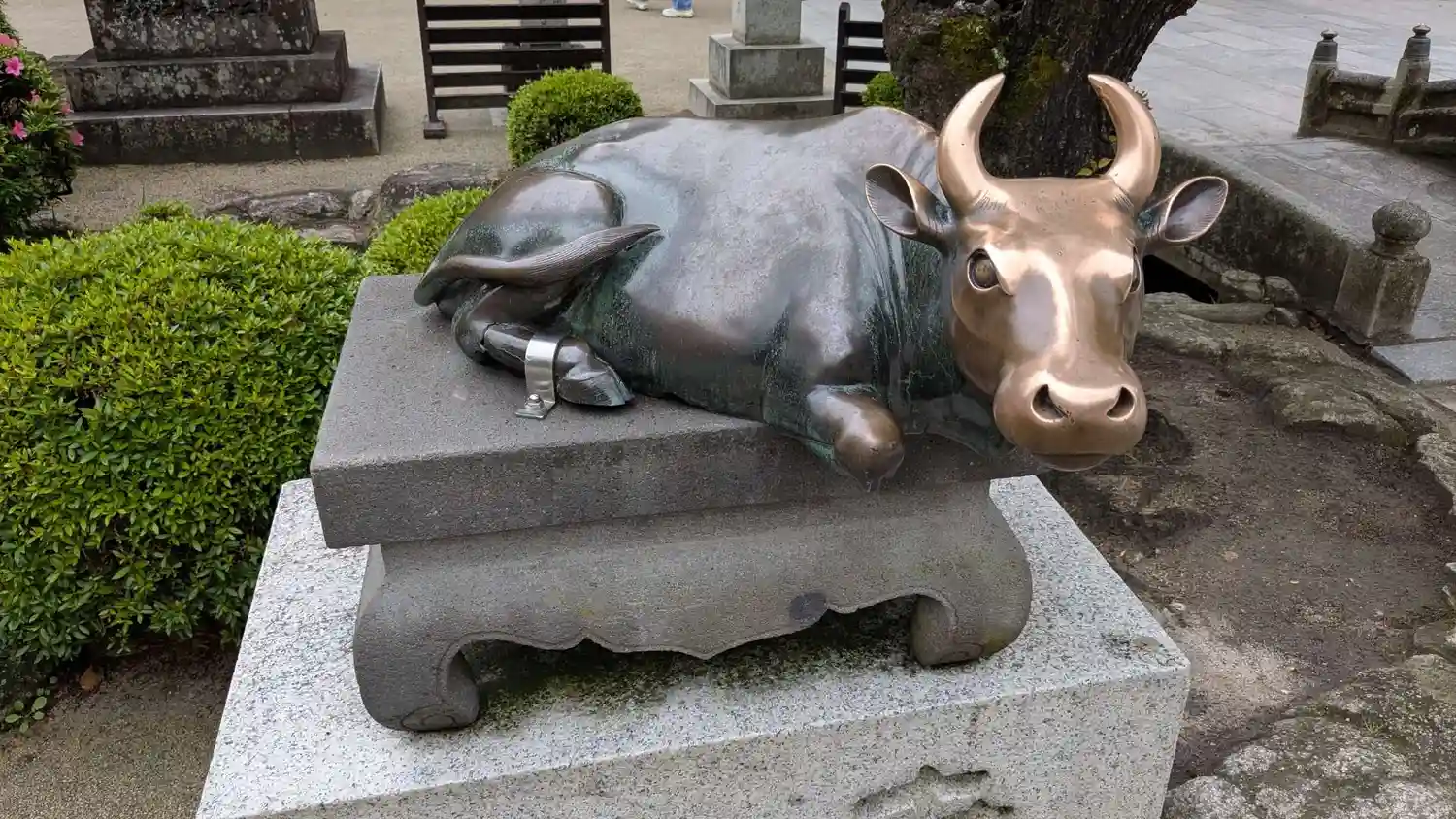 学業に秀でた道真公の御神徳により、御神牛像の頭をなでると知恵を授かるとされています😊