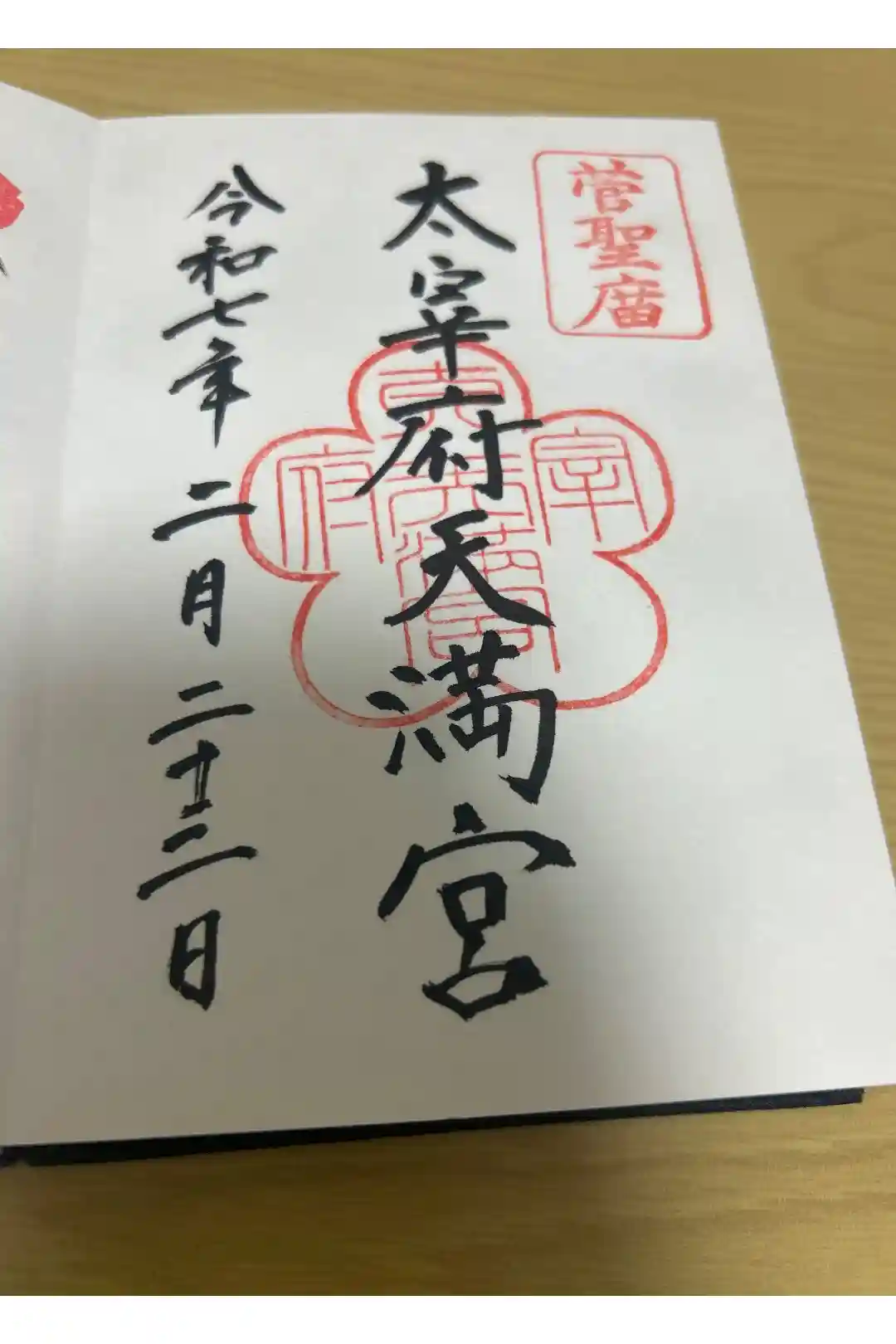 太宰府天満宮の墨書きに下に梅の形の神社印が押されています。