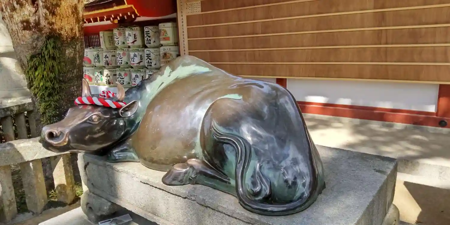 太宰府天満宮は菅原道真公の御遺骸を牛車に乗せて進んでいたところ牛が伏して動かなくなり、そこに御遺骸…