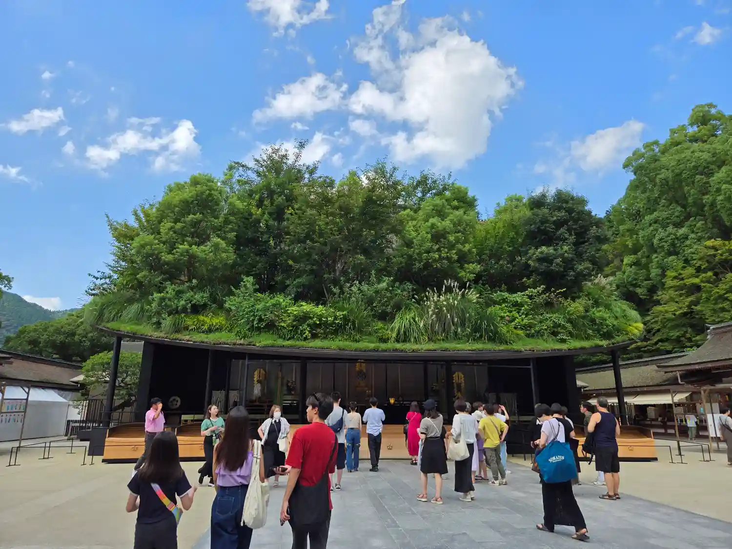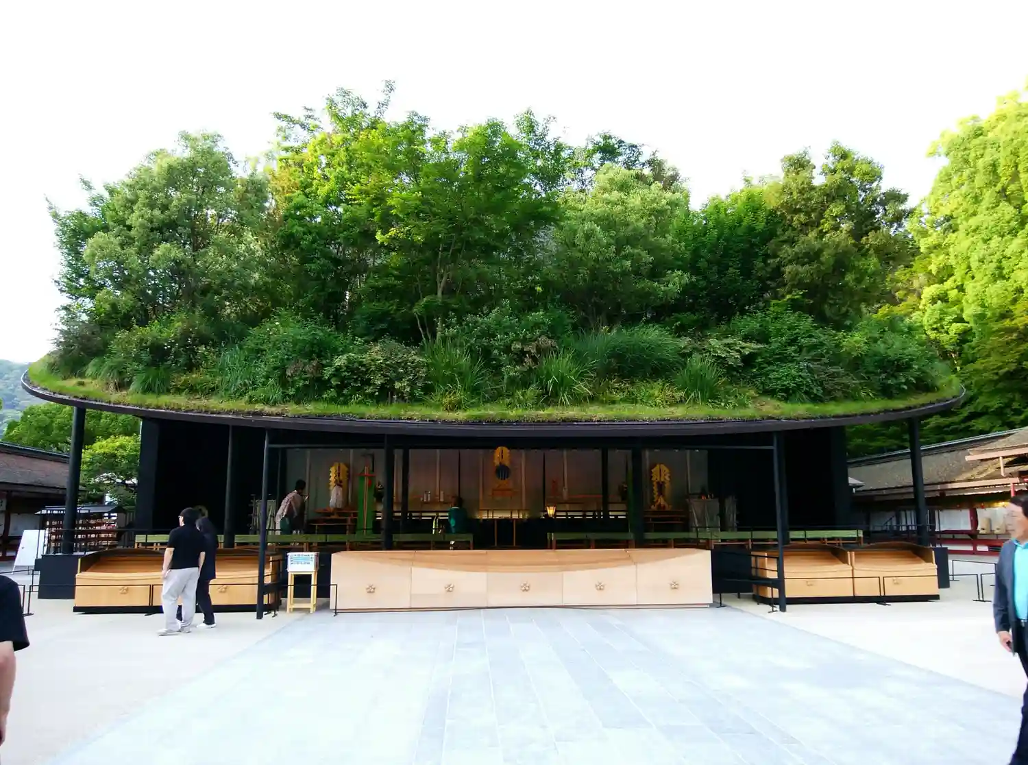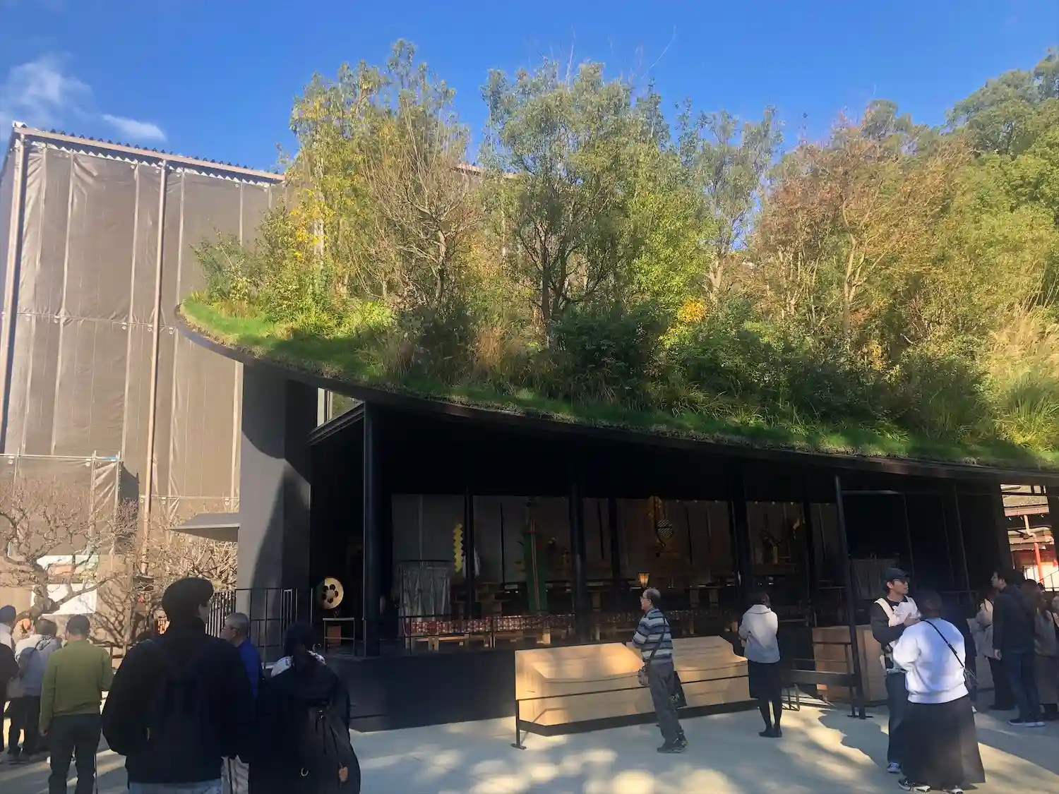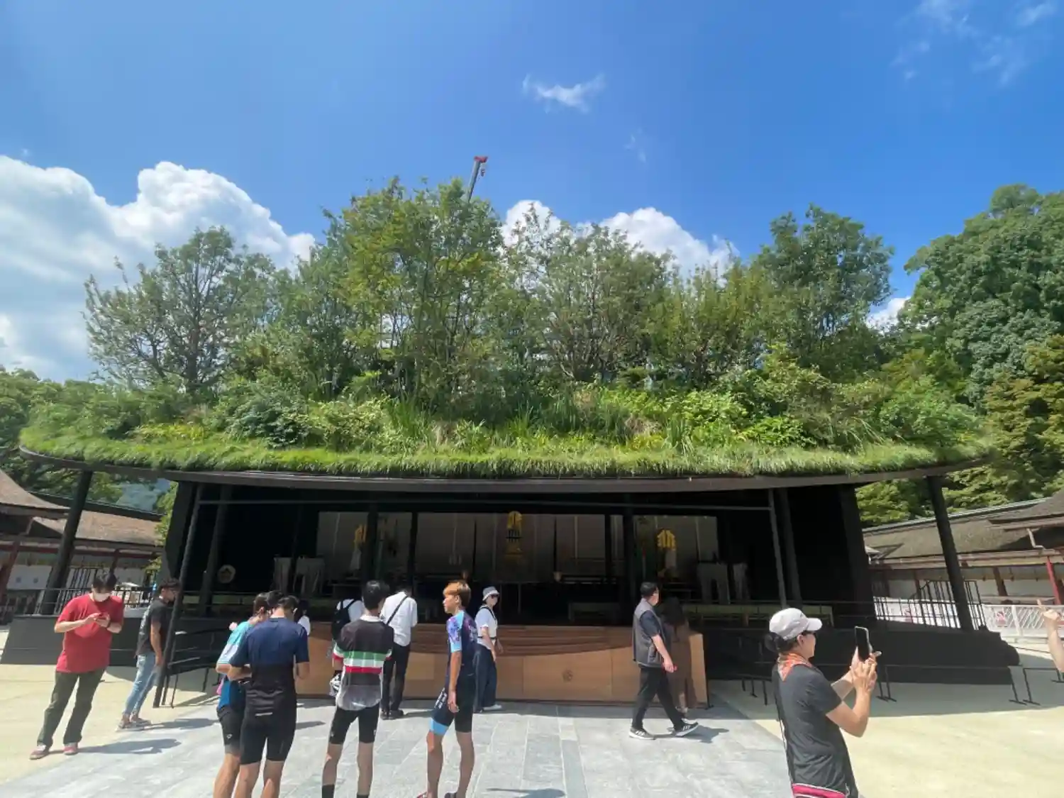 仮拝殿、屋根が本物の草木が生えていて凄かったです。