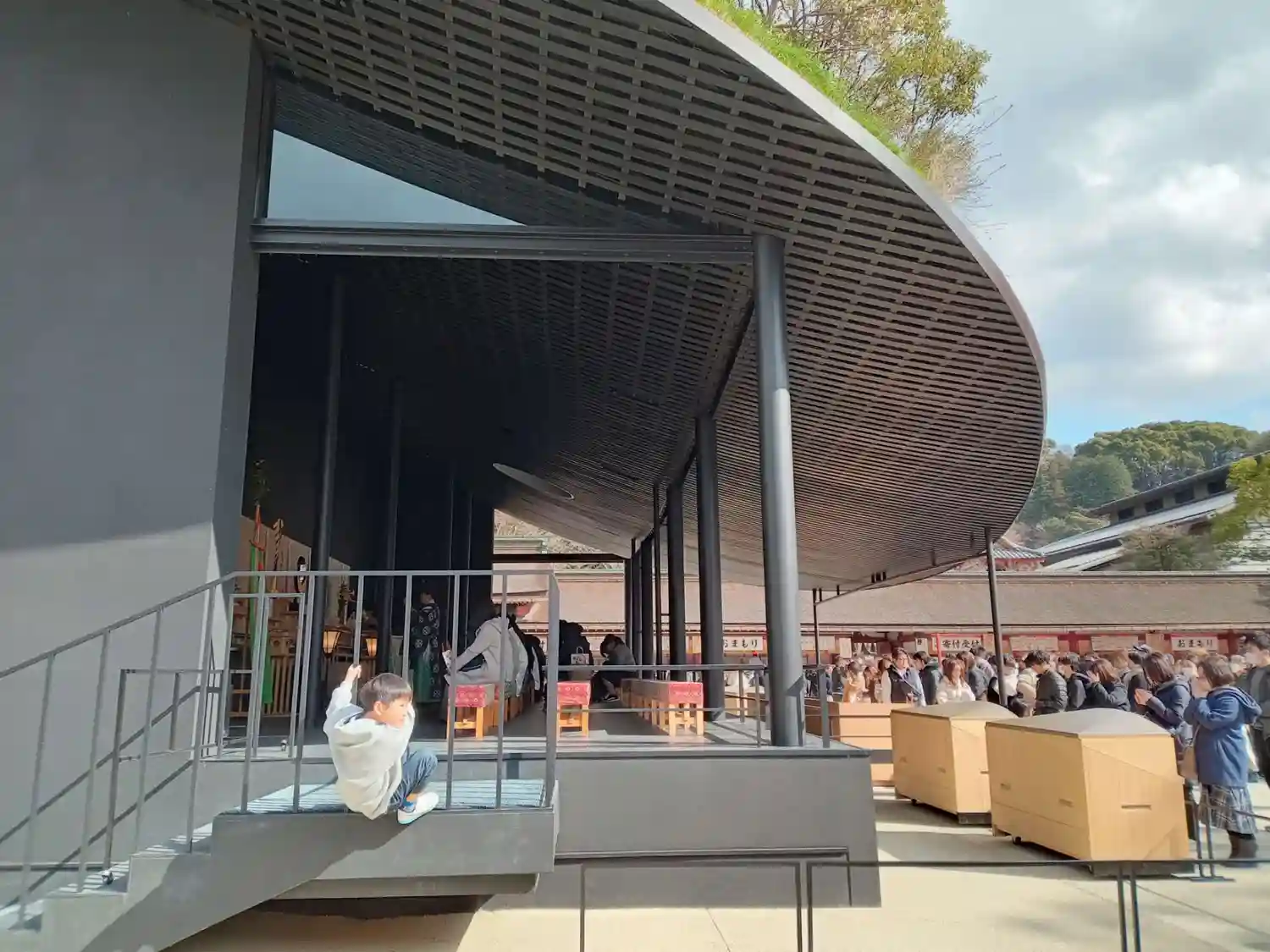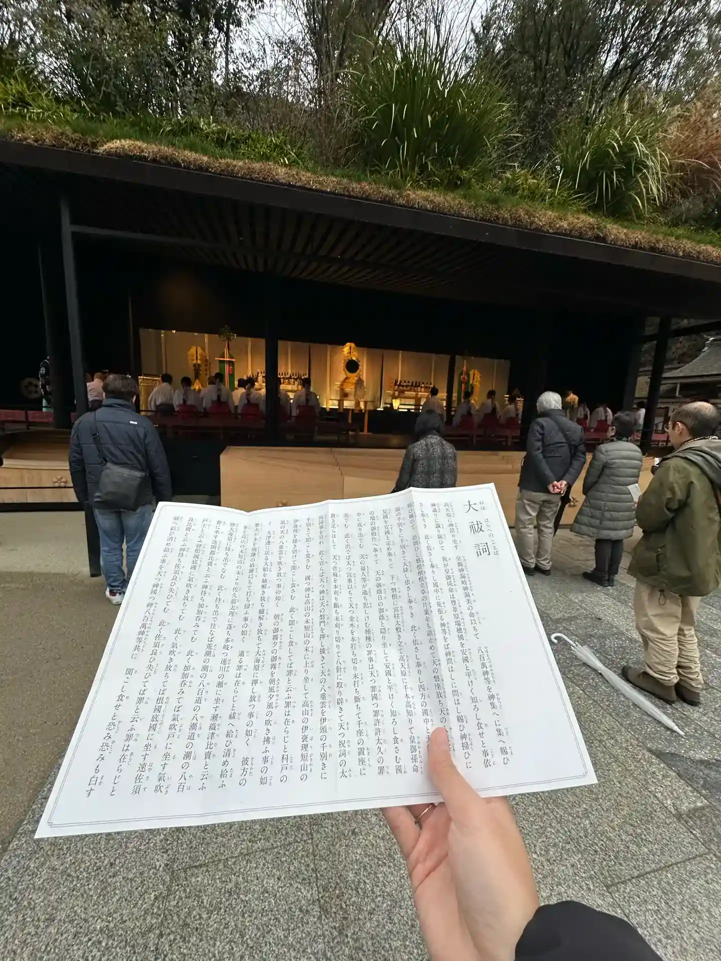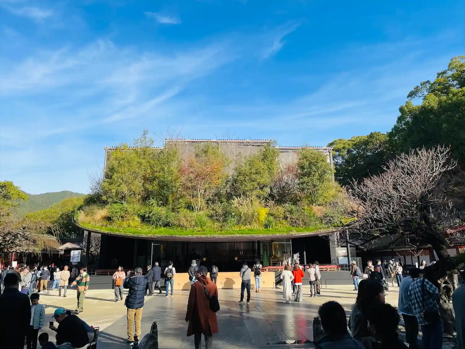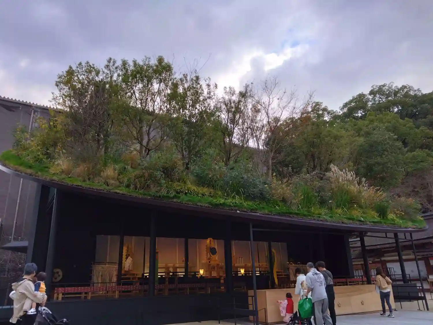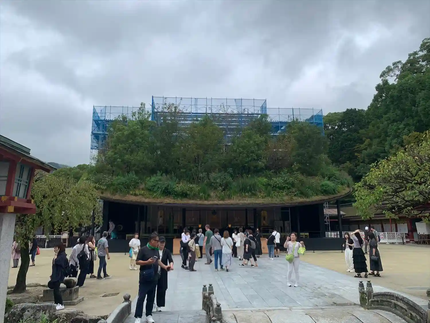 仮拝殿、屋根が本物の草木が生えていて凄かったです。